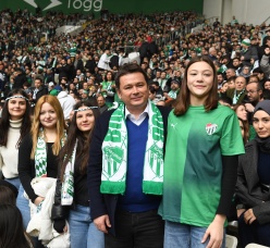 Osmangazi Belediye Başkanı Erkan Aydın, Bursaspor ile Anadolu Üniversitesi arasında oynanan karşılaşmayı, Çınar Lisesi öğrencileri ile birlikte tribünden izledi.