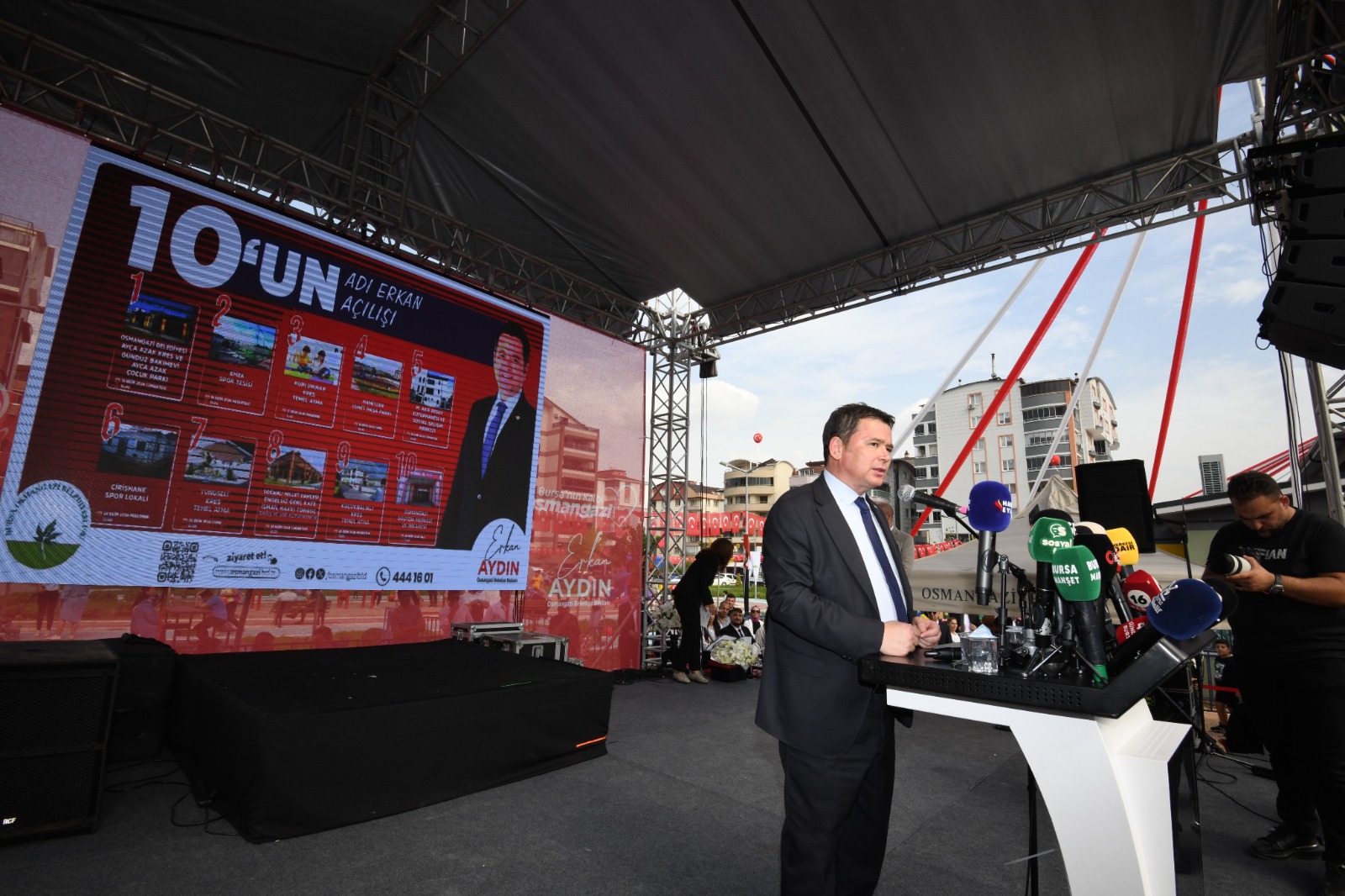 Osmangazi Belediye Başkanı Erkan Aydın, açılış töreninde yaptığı konuşmada, 6 Nisan tarihinde mazbatayı almalarının hemen ardından, seçimde verdiğimiz sözleri bir bir yerine getirmek adına çalışmaya başladıklarını söyledi. Başkan Aydın, “Parti olarak önem verdiğimiz konuların başında kreşler, yurtlar ve sosyal belediyecilik anlamında yapılacak olan hizmetler yer alıyor. Biz de hizmetlerimize, kreşler inşa ederek başladık. Yollarımızın kesiştiği hayırsever iş insanımız Metin Azak, vefat eden kızı Ayça Azak adına bir kreş inşa etme hayali olduğunu söylediğinde, birlikte bu kreşin inşaatı için el ele verdik. Osmangazi’de Atatürkçü, çağdaş Cumhuriyetçi, vatanını, milletini seven çocuklar yetiştirmek için bu kreşimizin temelini attık. Biz seçimden önce de, seçimden sonra da işe nereden başlayacaksınız diye sorduklarında hep aynı cevabı verdik ve anlayışı değiştireceğiz dedik. Bizim mega projelerimiz veya büyük vaatlerimiz yok; ancak anlayışı değiştirmek konusunda vaatlerimiz var” diye konuştu.