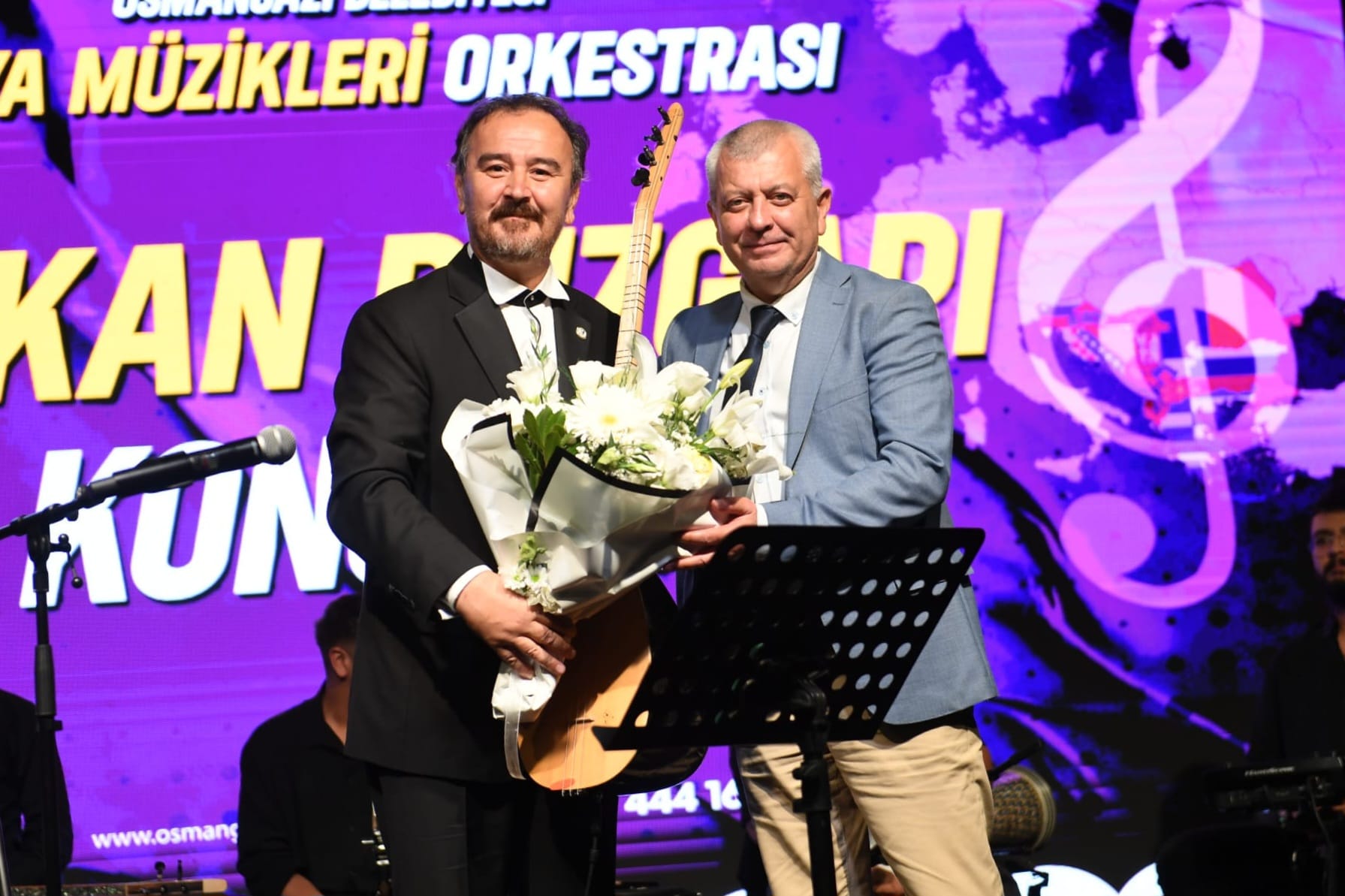 Gecenin sonunda Osmangazi Belediye Başkan Yardımcısı Mutlu Esendemir, Osmangazi Dünya Müzikleri Orkestrası üyelerine ve gecede sahne alan sanatçılara çiçek takdim etti.