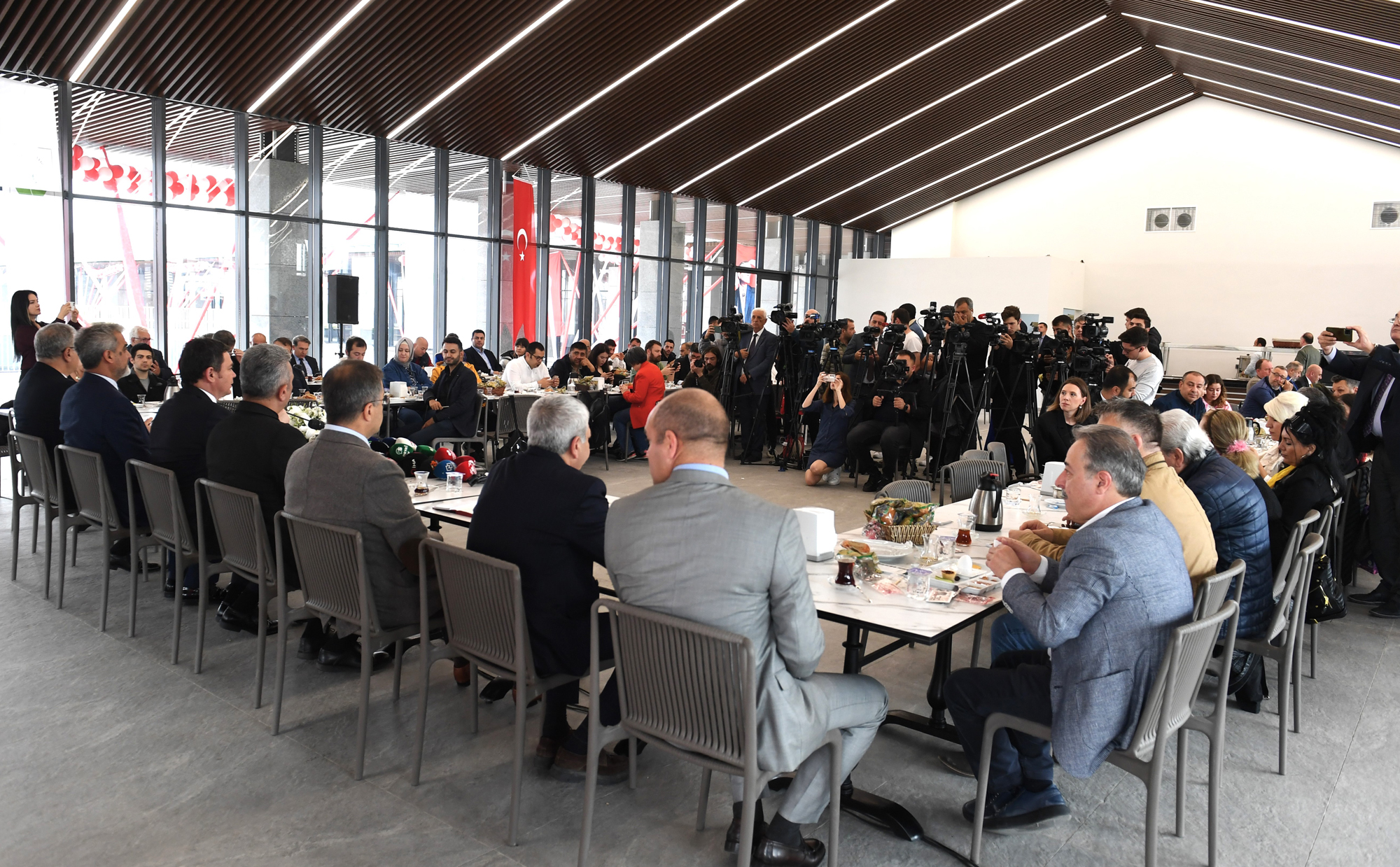 Başkan Aydın, Haziran ayının ilk haftasında hizmete açılacak olan Osmangazi Meydanı’ndaki Halk Lokantası’nda Bursa medyası ile buluştu. 31 Mart’ta göreve seçilmelerinin üzerinden 54, mazbata almalarının üzerinden ise 50 gün geçtiğini belirten Aydın, bugüne kadar yapılan faaliyetlerle ilgili bilgilendirmede bulundu. Toplantının yapıldığı Halk Lokantası’nı Haziran ayının ilk haftasında hizmete açacaklarının müjdesini veren Başkan Aydın, “4 çeşit yemeği 80 liradan sunacağımız bu lokantamız, özellikle dar gelirli yurttaşlarımıza, ekonomik sıkıntı içerisinde, günübirlik koşuşturma içerisinde ucuz yemeğe ulaşamayan vatandaşlarımıza hizmet verecek. Adını halk lokantası olarak koyduk. Bu şekilde hazırlayanlara da teşekkür ediyoruz. Saat 11.00 ile 15.00 arası hizmet vereceğiz. Burada yemekler self servis şeklinde aynı anda 300-350 kişiye hizmet verecek. Self servis ve hızlı serviste ortalama ilk etapta bin civarında günlük bir yurttaşımıza ucuz yemek imkanı sunacağız. Amacımız esnafa rakip olmak değil, onlarla rekabet etmek değil. Ancak günümüz koşullarında bir et yemeğinin 200 lira olduğunu hesaba kattığımızda 3-4 çeşit en uygun esnaf lokantasında 300-350 liraya mal olduğunu düşündüğümüzde, burada o gün yemeğe ulaşamayan vatandaşlarımıza uygun fiyatlı hizmet vereceğiz.” dedi.
