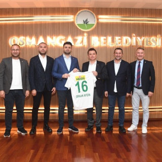 Bursaspor Başkanı Enes Çelik ve Yönetim Kurulu Üyeleri, Osmangazi Belediye Başkanı Erkan Aydın’ı ziyaret etti. Başkan Aydın’a Bursaspor forması hediye eden Enes Çelik, kulübe verdiği desteklerden dolayı teşekkürlerini sundu.