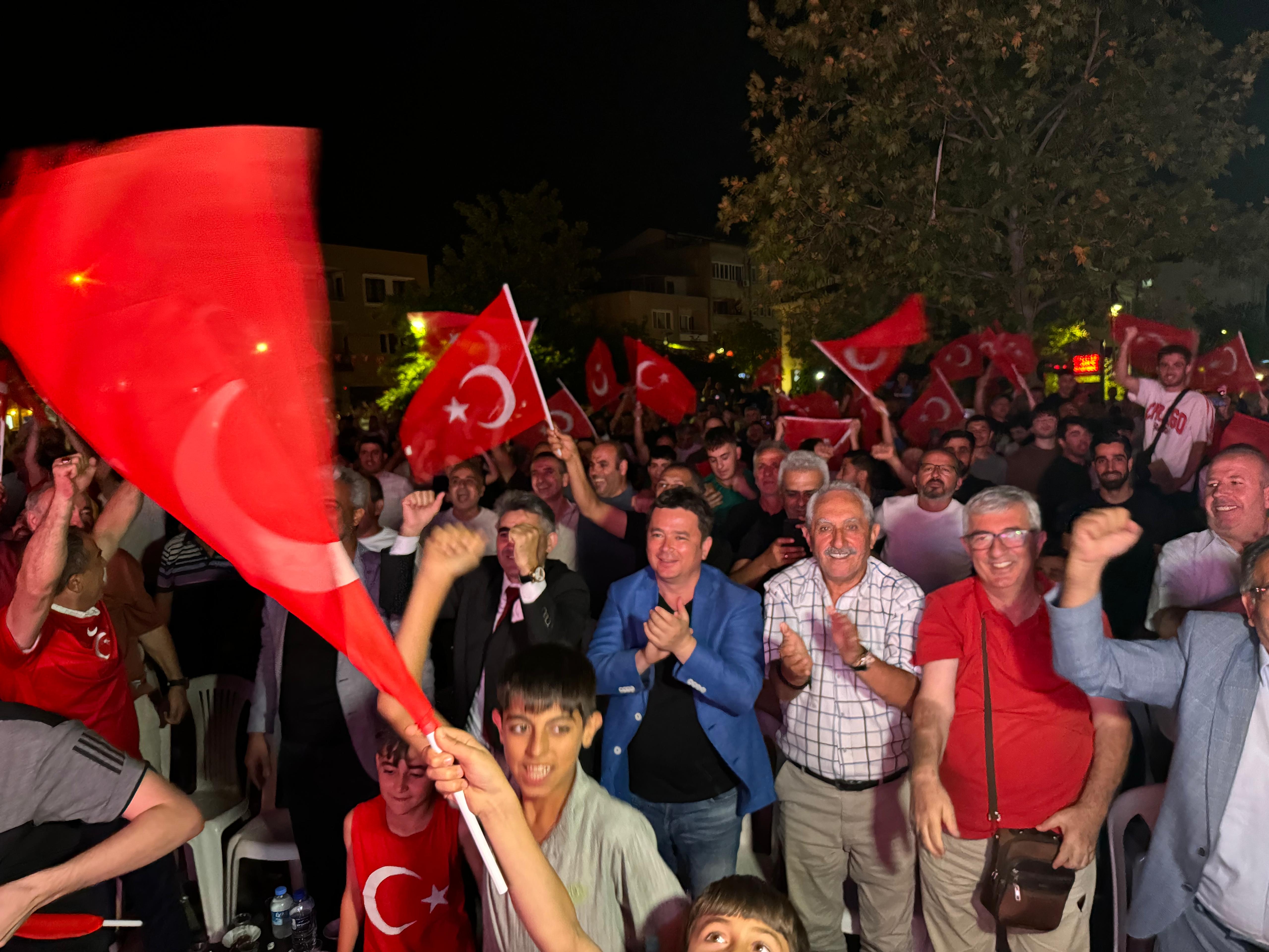 CHP Osmangazi İlçe Başkanı Cengiz Çelikten de, galibiyetten dolayı A Milli Futbol Takımı’nı tebrik etti. Kurulan dev ekranlarda milli maç keyfini yaşayan vatandaşlar, organizasyon için Osmangazi Belediye Başkanı Erkan Aydın’a teşekkür etti.