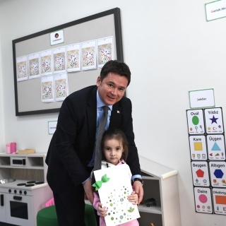 Osmangazi Belediye Başkanı Erkan Aydın, Ayça Azak Gündüz Bakımevi ve Çocuk Kreşi’nde eğitim gören çocukların karne heyecanına ortak oldu.