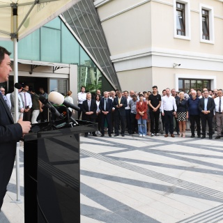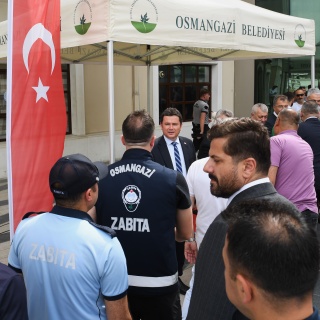 Belediye binası bahçesinde düzenlenen bayramlaşma törenine Osmangazi Belediye Başkanı Erkan Aydın ile birlikte belediye başkan yardımcıları, meclis üyeleri ve birim müdürleri de katıldı. Tüm personellerin bayramını tek tek kutlayan Başkan Aydın, birlik ve beraberlik mesajı vererek “Biz bir aileyiz” vurgusu yaptı.