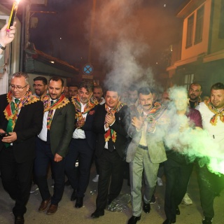 Kendisini büyük coşku ve meşalelerle karşılayan hemşehrilerine teşekkür ederek sözlerine başlayan Osmangazi Belediye Başkanı Erkan Aydın, “Bu gurur, sevinç ve haklı kutlamalar aslında benim değil hemşehrilerimin başarısı. Ben, temsil makamında olan bu yarışa medeni cesaret göstererek çıktım ama zaferi kazanmamızı sağlayan dağ yöresi insanıdır. Yöre insanımız burada 700 yıldır yaşamasına rağmen hak ettiğini alamadığını düşünüyoruz. Hemşehrilerimin büyük desteğiyle halkımızın teveccühüyle Allah da nasip etti bu dönem Osmangazi Belediye Başkanı olarak vatandaşlarımıza hizmet etme fırsatımız oldu. Allah, bizleri mahcup etmesin. Halkımızın bize yüklediği sorumluluğun farkındayız. İşimizin kolay olmadığının bilincindeyiz. Biz bu bilinçle yola çıktık. Çok çalışma sözüyle hep birlikte bunun da üstesinden geleceğiz. Hep birlikte el ele, Bursa, Dağ yöresi ve Osmangazi’ye güzel hizmetler edeceğiz.” dedi.
