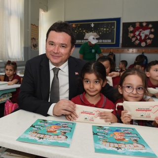 Başkan Aydın hediyeleriyle öğrencileri sevindirdi