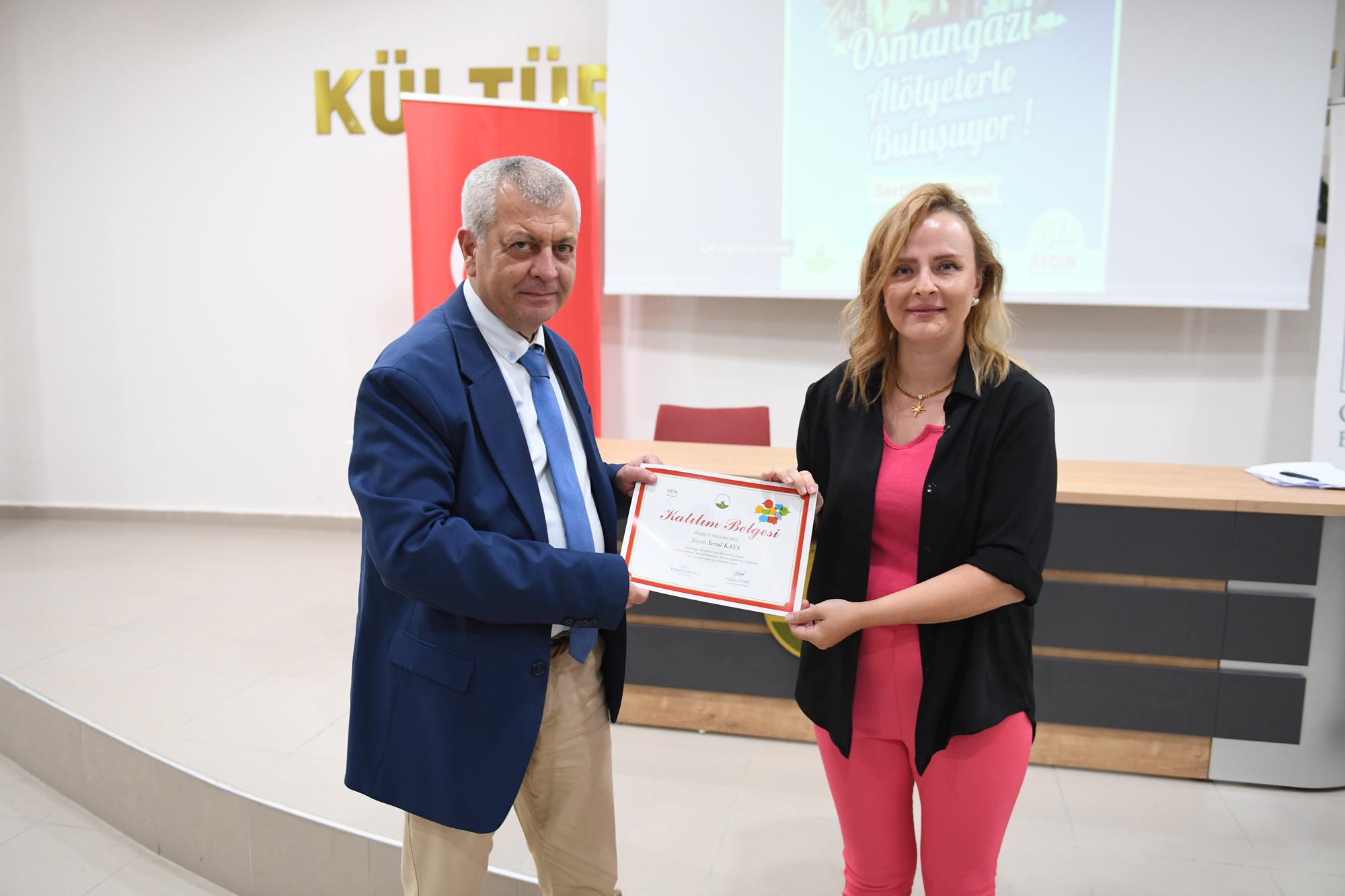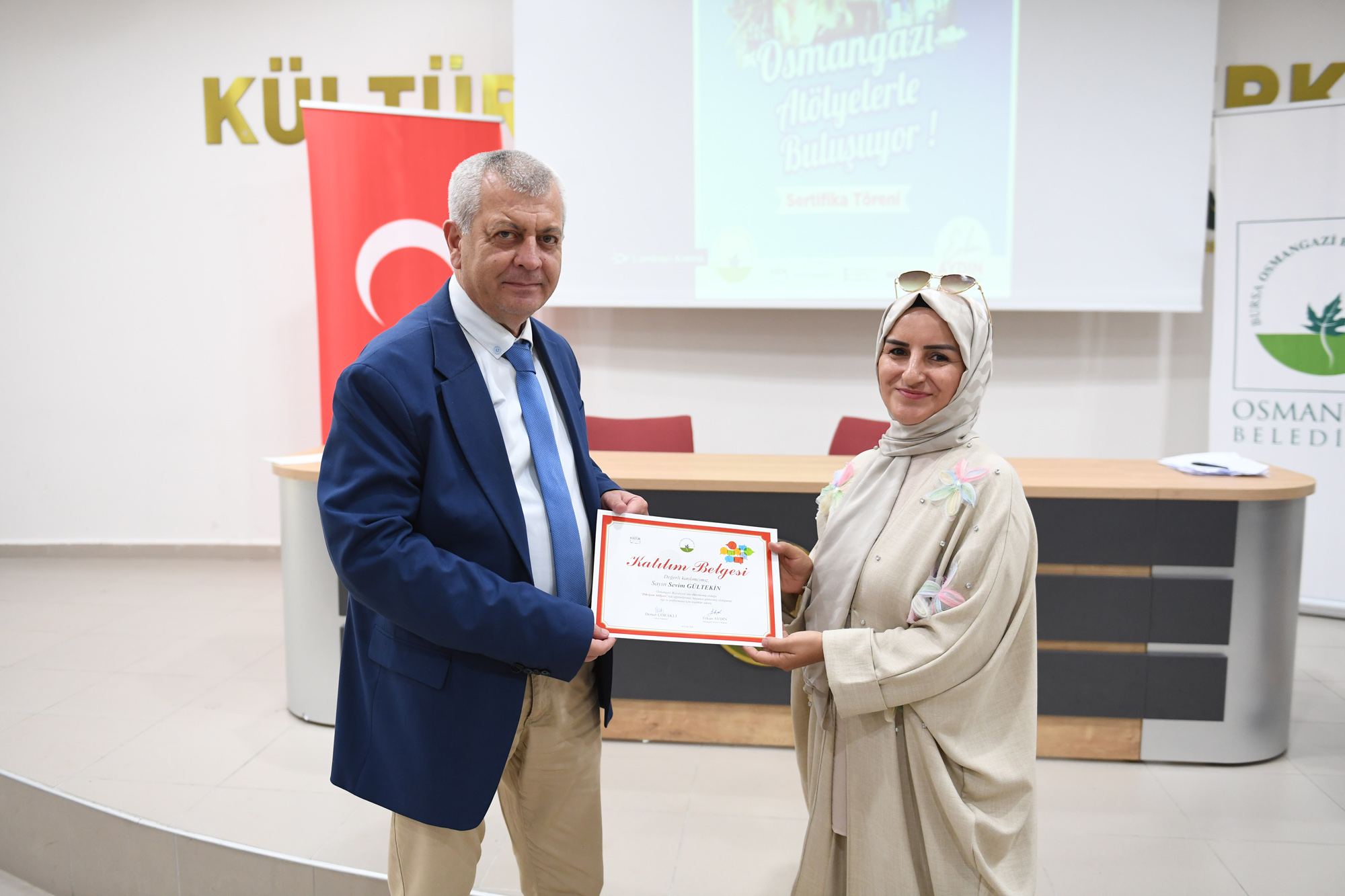 Eğitimleri başarıyla tamamlayan kursiyerler için Demirtaş Kültür Merkezi’nde sertifika töreni düzenlendi. Osmangazi Belediye Başkan Yardımcı Mutlu Esendemir ve Osmangazi Belediye Meclis Üyesi Sinan Nergiz, kursiyerlere sertifikalarını takdim ederek, başarılar diledi.