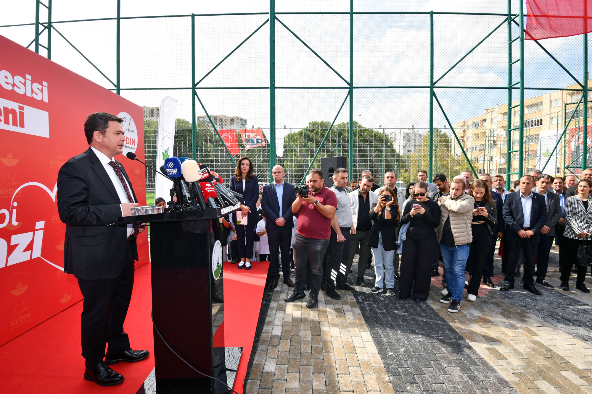 Osmangazi Belediye Başkanı Erkan Aydın’ın ev sahipliğinde gerçekleştirilen Emek Spor Tesisi’nin açılışına Mudanya Belediye Başkanı Deniz Dalgıç, Büyükşehir Belediye Başkan Vekili Mehmet Saldız, CHP Bursa İl Başkanı Nihat Yeşiltaş, CHP Osmangazi İlçe Başkanı Cengiz Çelikten, önceki dönem milletvekili Gülay Yedekçi, Emek Adnan Menderes Mahallesi Muhtarı Naci Özbay, belediye meclis üyeleri, başkan yardımcıları, sporcular ve davetliler katıldı.
