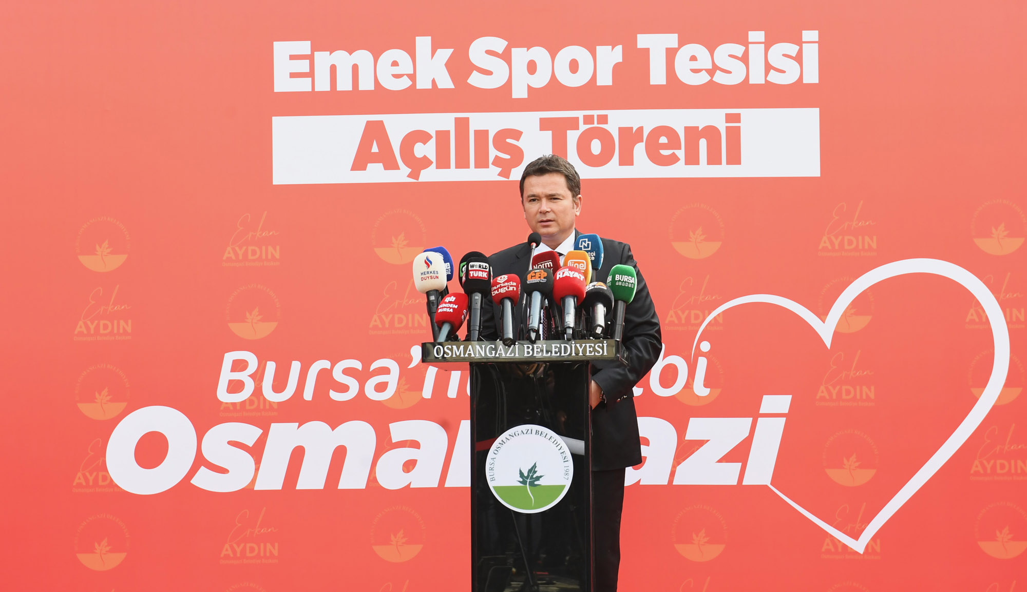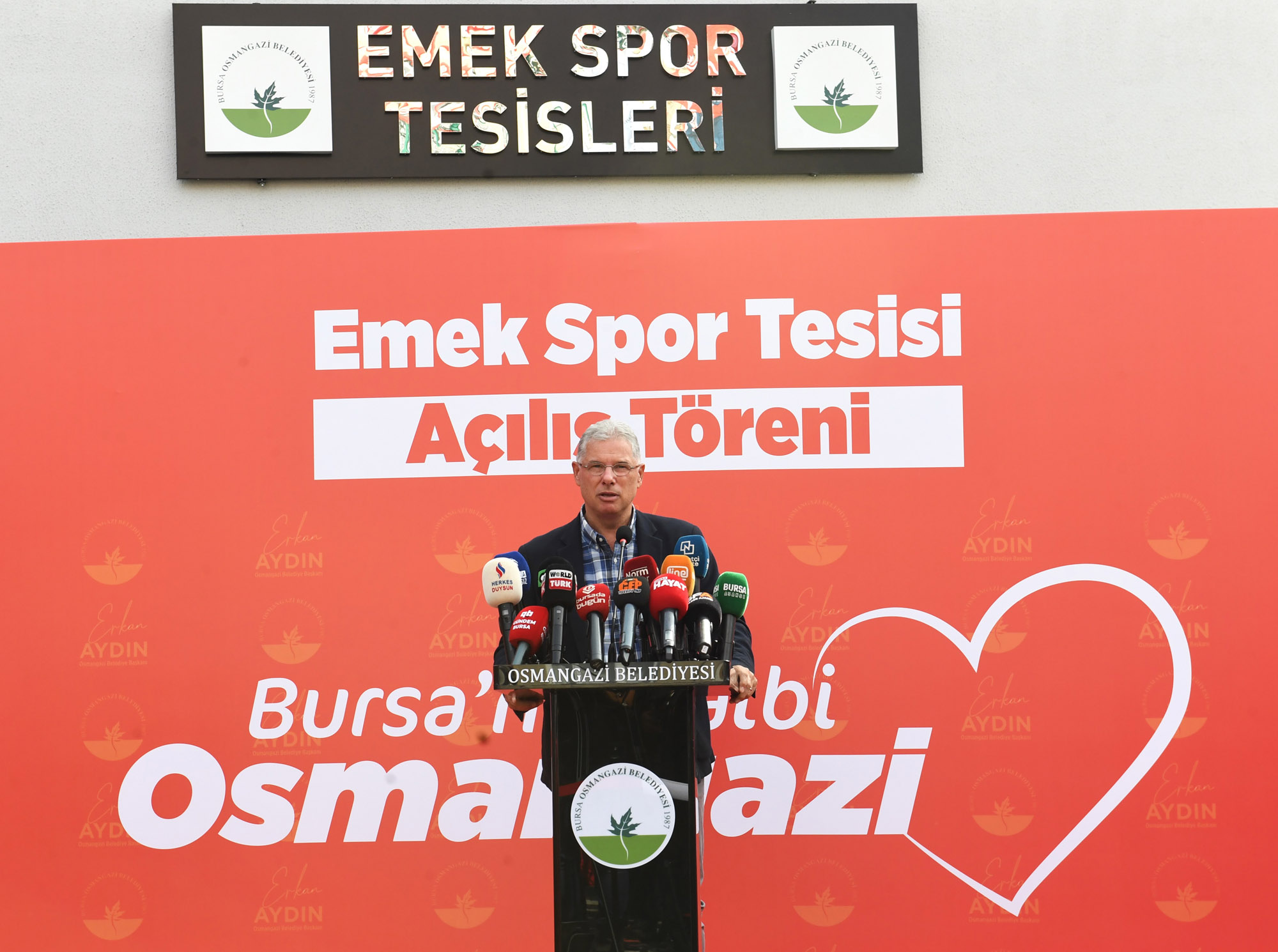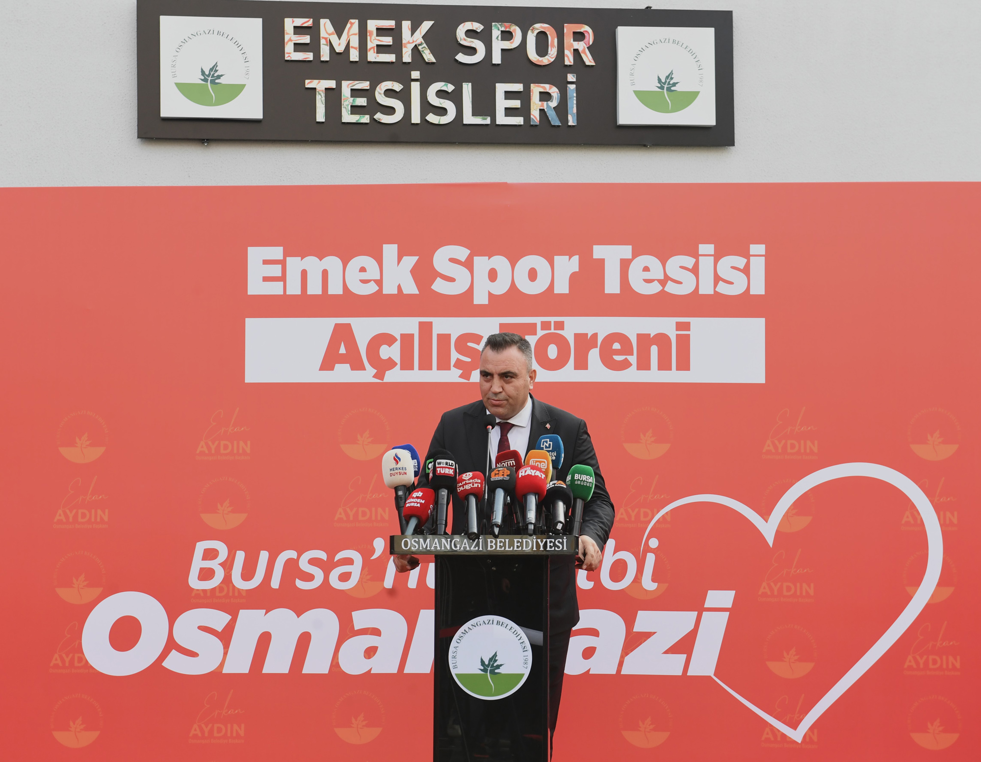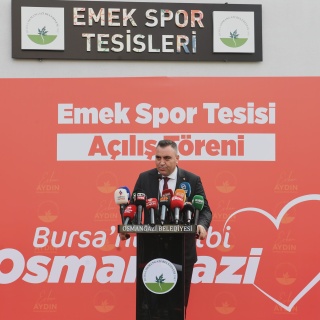 Osmangazi Belediye Başkanı Erkan Aydın, Emek Spor Tesisi’nin açılışında yaptığı konuşmada, Bursa’nın kalbi Osmangazi’ye yakışır hizmetleri yapmak için zamanla yarıştıklarını ifade etti. Devlette devamlılık esastır diyen Başkan Aydın, “Yapılan bütün yatırımlar, kamunundur. Halkın kullanımı için yapılan hizmetlerdir. Seçimlerin ardından göreve gelmemizle birlikte, geçmiş yönetim zamanından kalan işlerin tamamlanması adına da yoğun bir çalışma yürütüyoruz. Bu dönemki bütçemizden kaynak ayırarak bu işleri tek tek tamamlıyoruz. 29 Ekim tarihine kadar toplam 11 açılış ve temel atma töreni düzenleyeceğiz. Vakit çok hızlı geçiyor. Bunu çok iyi biliyoruz. O yüzden kaybedecek zamanımız yok. Osmangazi’ye sosyal belediyeciliği getirmemiz ve hizmetleri arttırmamız gerekiyor” dedi.
