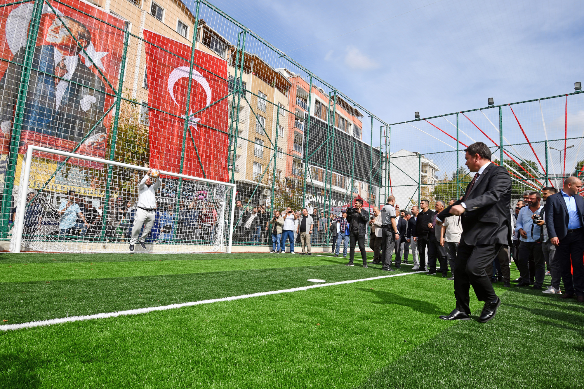 Konuşmaların ardından Başkan Aydın ve protokol üyeleri, sporcularla birlikte futbol sahasına geçerek penaltı atışları yaptı. Başkan Aydın, çektiği isabetli şutlarla futboldaki yeteneklerini gösterdi. Başkan Aydın, açılış töreninin ardından Başkan Aydın, genç sporcularla hatıra fotoğrafı çektirmeyi de ihmal etmedi.