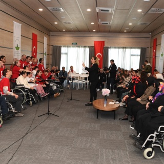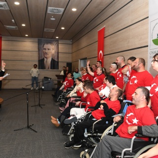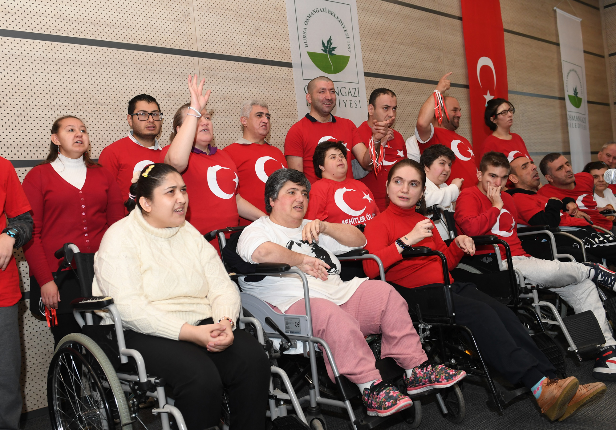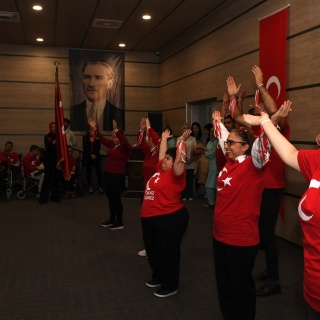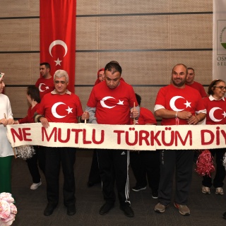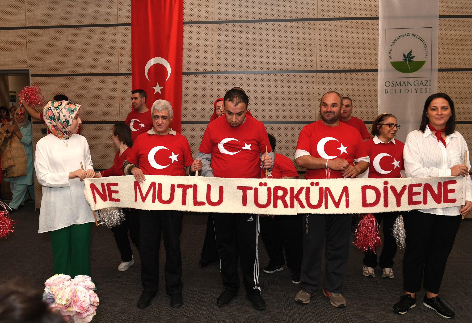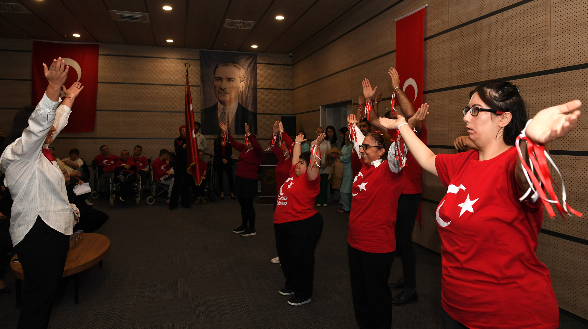 Osmangazi Belediyesi Engelliler Bakım Merkezi (OBAM)’da eğitim gören özel gereksinimli bireyler, TUSAŞ’a düzenlenen hain terör saldırı nedeniyle erteledikleri 29 Ekim Cumhuriyet Bayramı kutlama programını gecikmeli de olsa gerçekleştirmenin mutluluğunu ve gururunu yaşadı. Cumhuriyetin 101’inci yılını, söyledikleri marşlar ve hazırladıkları koreografi ile kutlayan engelli bireyler, daha sonra üzerinde Atatürk’ün fotoğraflarının yer aldığı siyah pelerinleri giyerek ölümünün 86’ıncı yılında Atalarını saygı, minnet ve özlem ile andı. Osmangazi Belediyesi Engelliler Bakım Merkezi’nde gerçekleştirilen etkinliklere (OBAM)’da gerçekleştirilen programa, engelli bireylerin aileleri ve belediye yetkilileri katıldı. Öğretmenleri eşliğinde hazırladıkları koreografileri başarılı bir gerçekleştiren özel gereksinimli bireyler, program sonunda büyük alkış aldı.