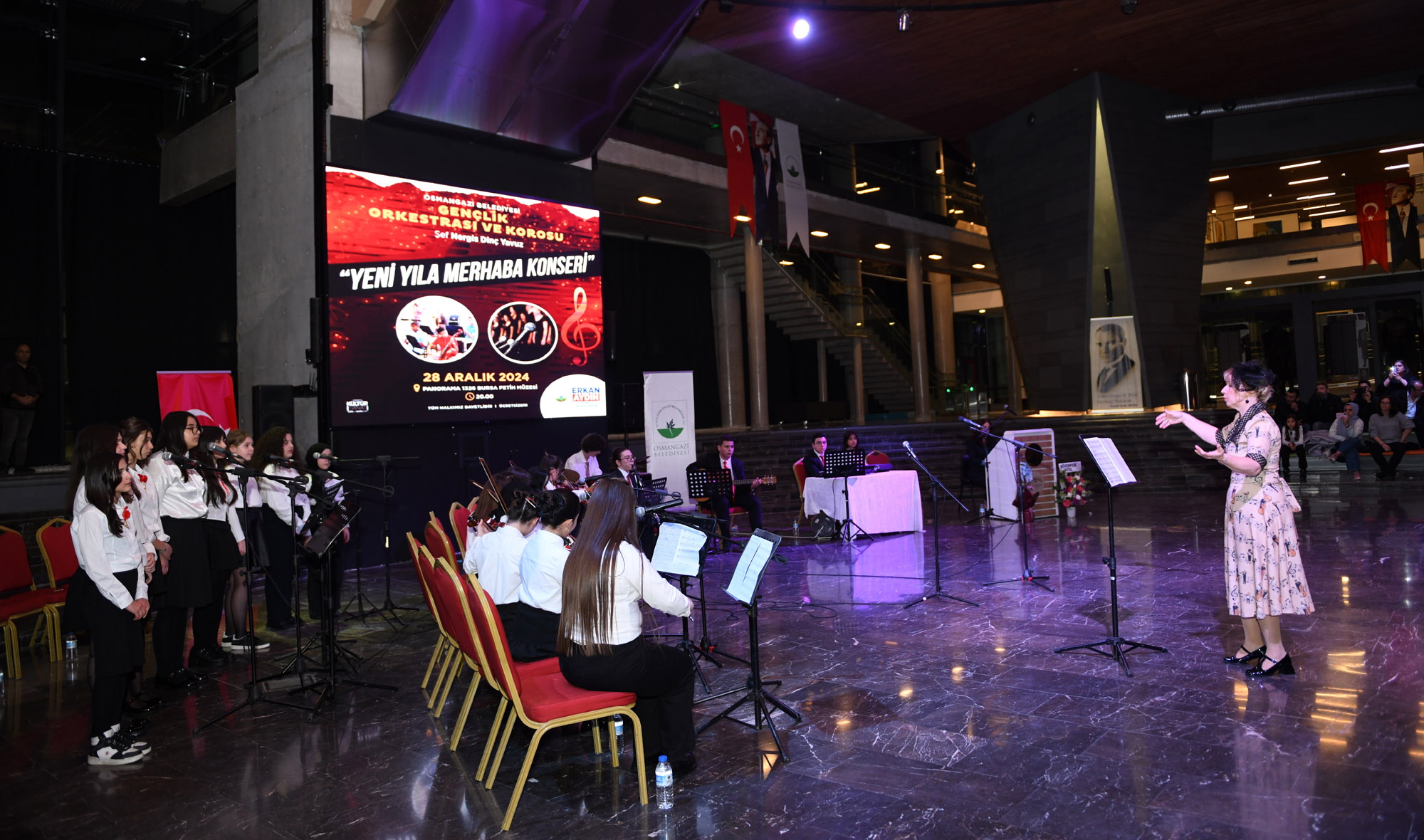 Sanatseverlerin yoğun ilgi gösterdiği ‘Yeni Yıla Merhaba Konseri’ne Osmangazi Belediye Başkan Yardımcısı Mutlu Esendemir, meclis üyeleri ve çok sayıda vatandaş katıldı. Osmangazi Belediye Başkan Yardımcısı Mutlu Esendemir, konser sonunda Şef Nergis Dinç Yavuz’a çiçek takdim etti.