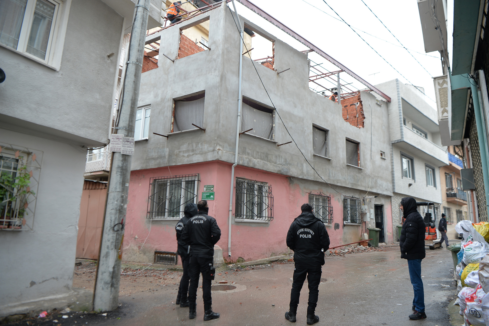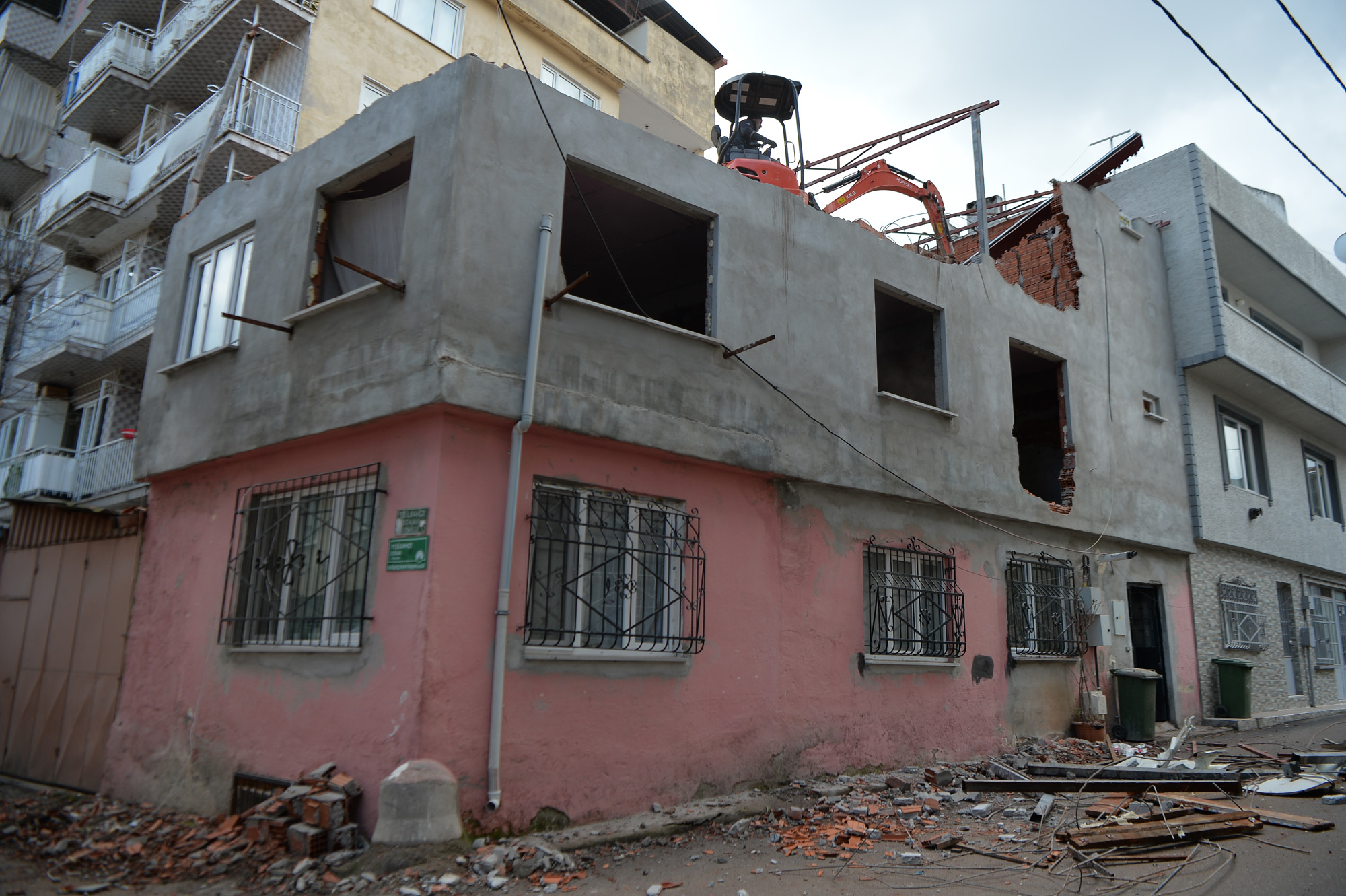 Osmangazi Belediyesi, Koğukçınar Mahallesi’nde tek katlı bir evin üzerine kaçak olarak inşa edildiği belirlenen iki katı, inşaat aşamasındayken yıktı.