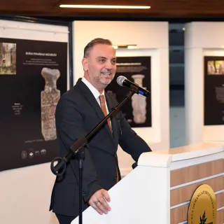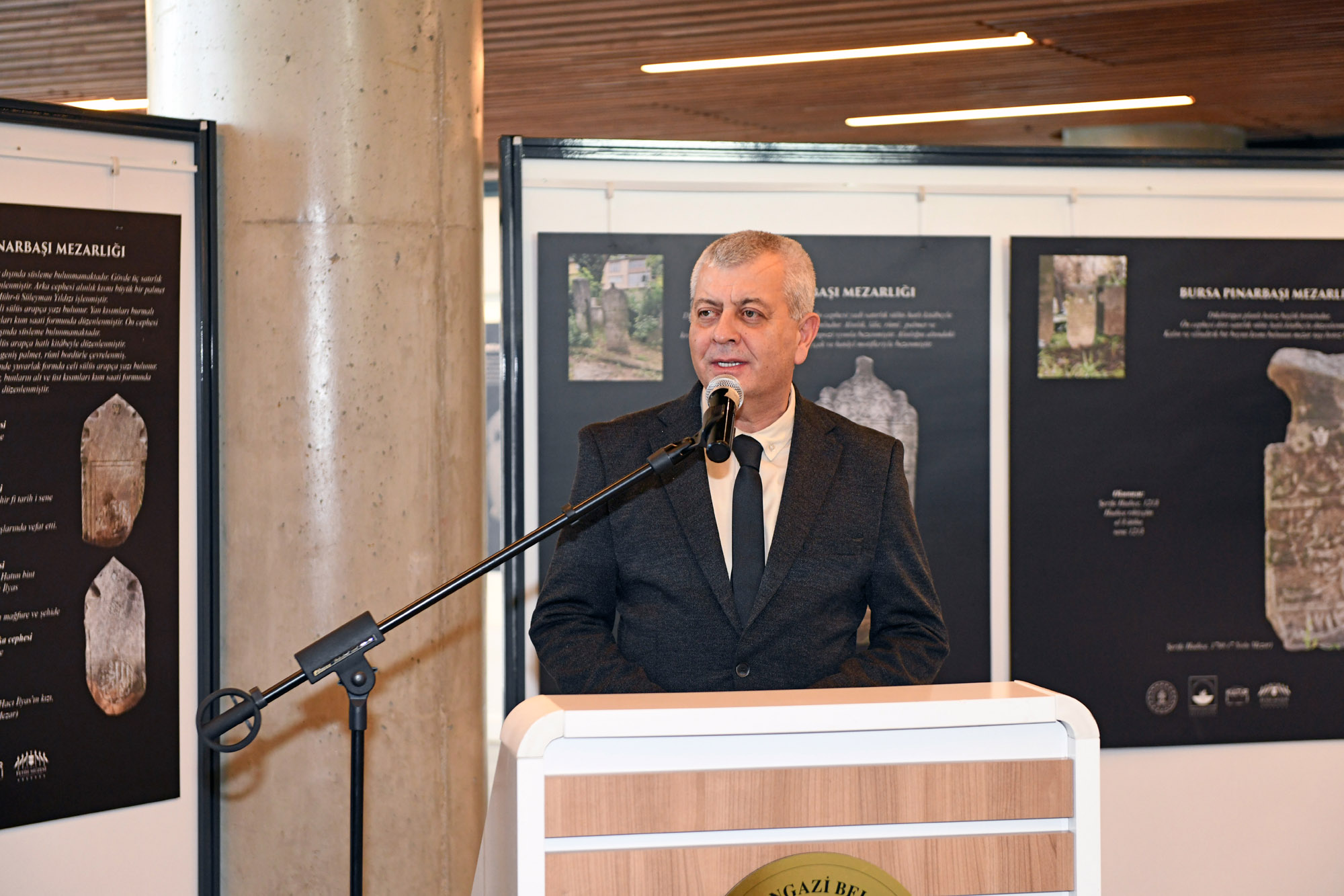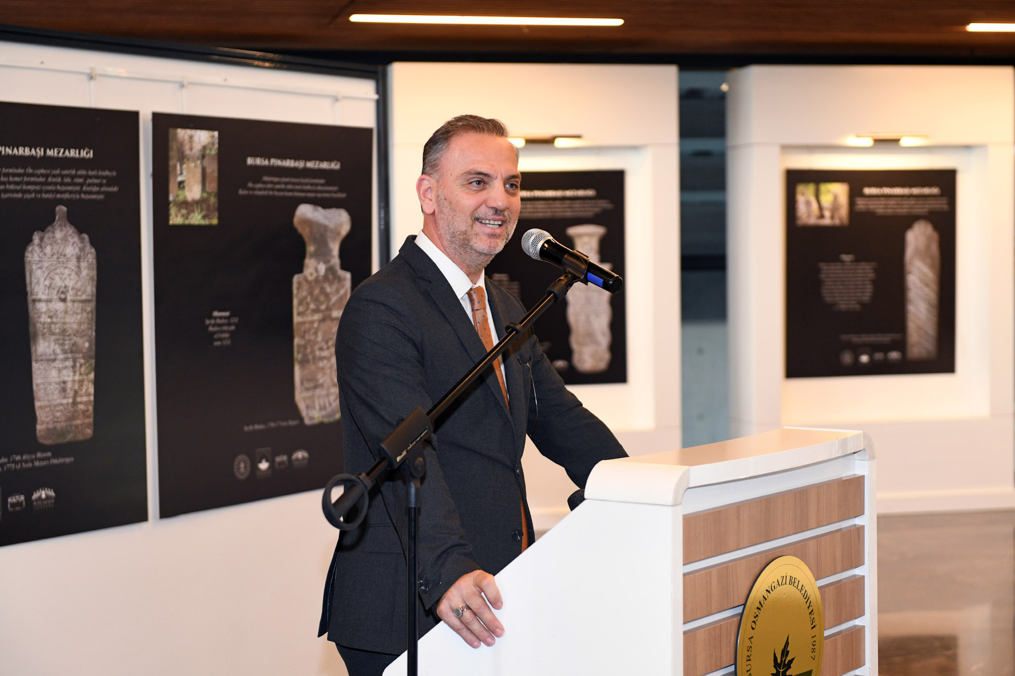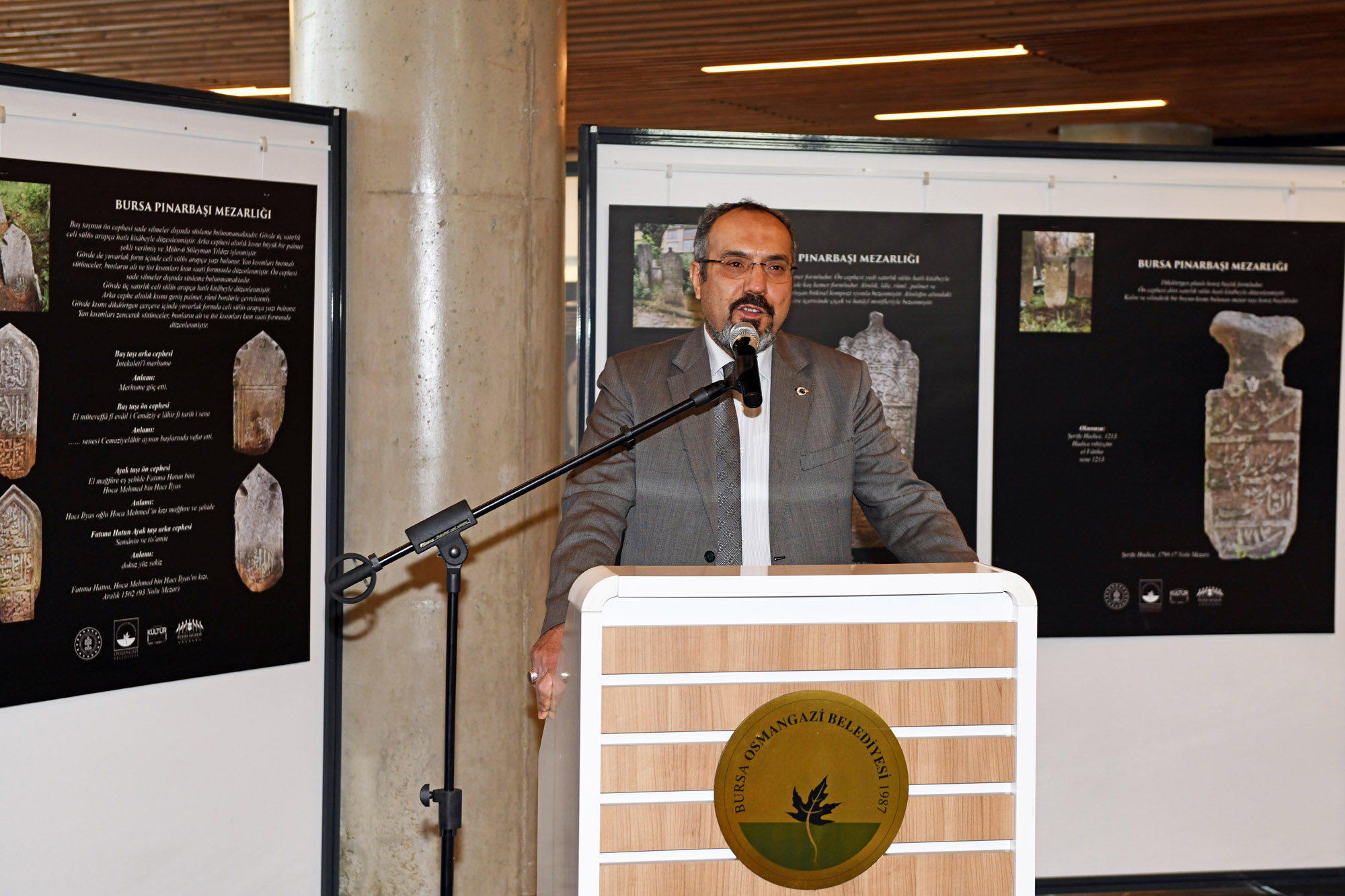 Serginin açılış töreninde konuşan Uludağ Üniversitesi Fen Edebiyat Fakültesi Sanat Tarihi Bölümü Başkanı Prof. Dr. Bülent Nuri Kılavuz, Türk sanatında heykelin çok yaygın olmadığını hatırlatıp, “Ama emin olun bu mezar taşlarının her birisi en az heykellerle yarışacak derecede bir öneme sahip. Çünkü bizi anlatıyor. Bizim kültürel gelişimimizi, bizim tarih içindeki misyonumuzu, sanatımızı, kültürümüzü, dilimizi hatta kendi dil gelişimimizi mezar taşlarında görebiliriz” dedi. Mezar taşlarının Türk sanatının en önemli temsilcilerinden olduğunu dile getiren Kılavuz, “Bursa, coğrafyası Türk kültürü ve sanatının en iyi şekilde filizlendiği, geliştiği, Orta Asya’dan devam eden genlerin en iyi şekilde ortaya konulduğu bir yer. Türk sanatının karakteristik özelliklerinden biri şüphesiz, ata kültürün bir devamı olan mezar taşlarıdır. İnsana verilen, ataya verilen değeri, yanımızda olan, bir zamanlar birlikte olduğumuz insanların bu dünyadan ayrıldıktan sonra hala varlığını gösteren en önemli simgelerdir. Türk kültüründe ölmek, yok olmak diye bir şey yok. Uçmak var, öbür dünyaya gitmek var. Ve mezar taşları Türk kültürünün en güzel şahidi. Mezarlıkları en iyi şeklide deşifre edip Türk sanatına katkı sağlamamız gerekiyor” diye konuştu.