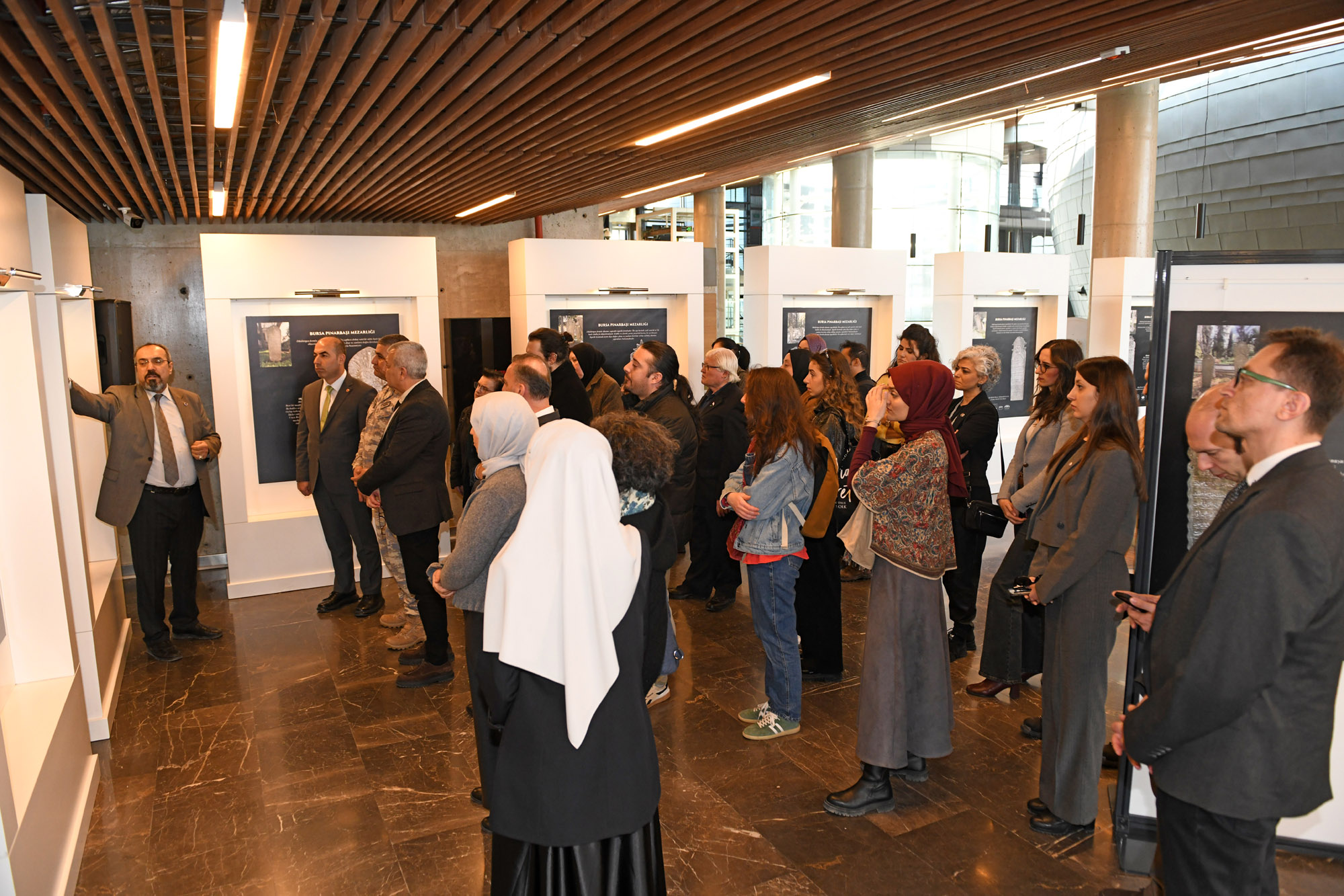 Konuşmaların ardından sergi ziyarete açılırken, Prof. Dr. Bülent Nuri Kılavuz, fotoğraflardaki mezar taşlarının formları, üzerindeki yazılar ve verdikleri mesajlar hakkında davetlileri bilgilendirdi.