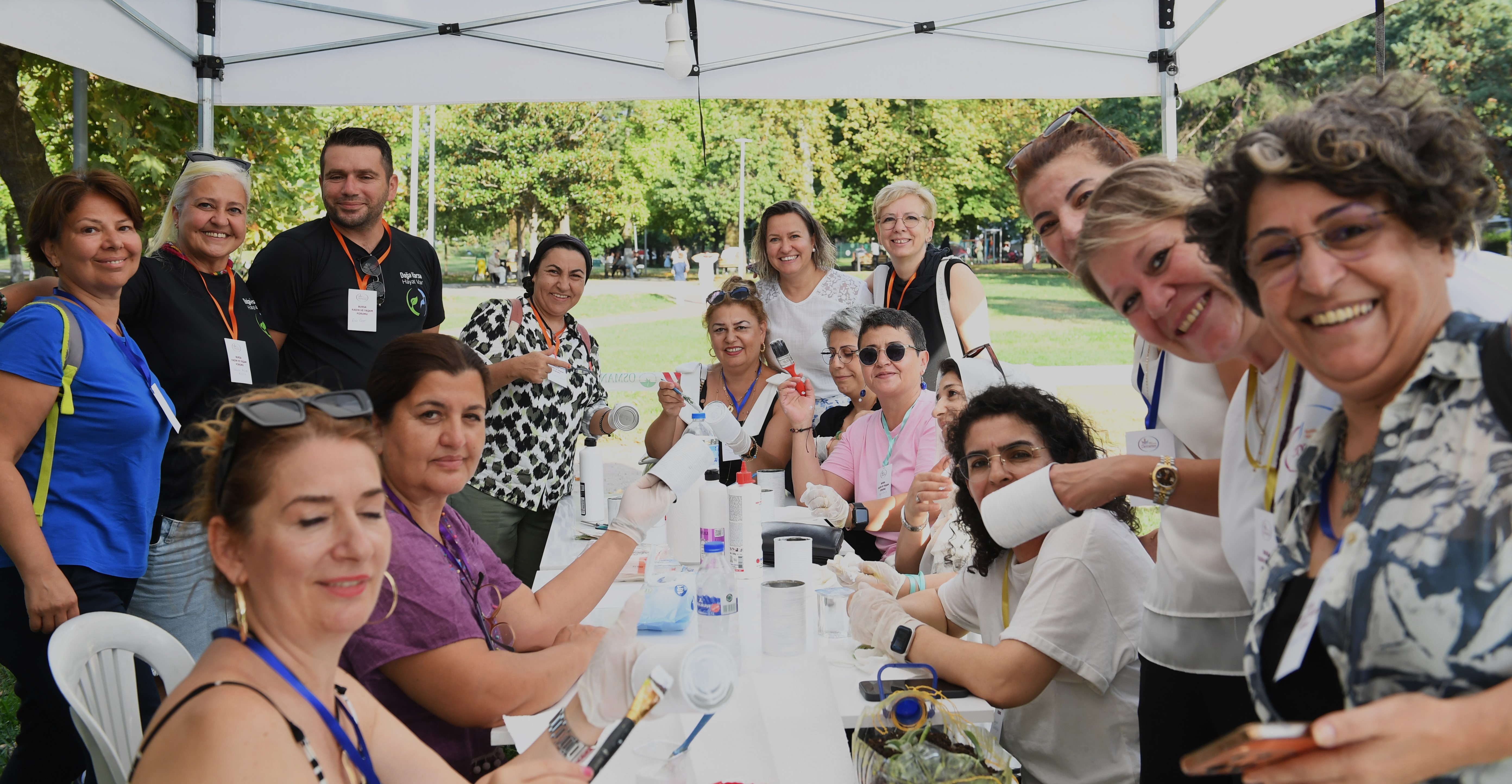 Merinos Parkı’nda düzenlenen Bursa Kadın ve Yaşam Forumu’na katılan kadınlar, Türkan Saylan Taş Boyama, Bahriye Üçok Resim, Cahide Sonku Doğanın Dili Geri Dönüşüm, Afife Jale doğaçlama atölyelerinde alanında uzman eğitmenlerden bilgiler alıp pratik yapma imkânı buldu. Etkinlik kapsamında Bursa Barosu’ndan 4 avukat, kadın ve çocuk hakları konusunda bilgilendirmede bulundu. Konusunda uzman doktorlar ise kadın kanserleri hakkında bilgiler verdi. Kadınlar boyalara basarak kumaşın üzerine ayak izlerini bıraktı. Kadınların eşitlik ve özgürlük için bıraktığı ayak izleri Osmangazi ilçesinin en görünen yerlerinde sergilenecek. Foruma katılan kadınlar müzik eğlencesi ve ritim gösterisi eşliğinde keyifli vakit geçirdi.