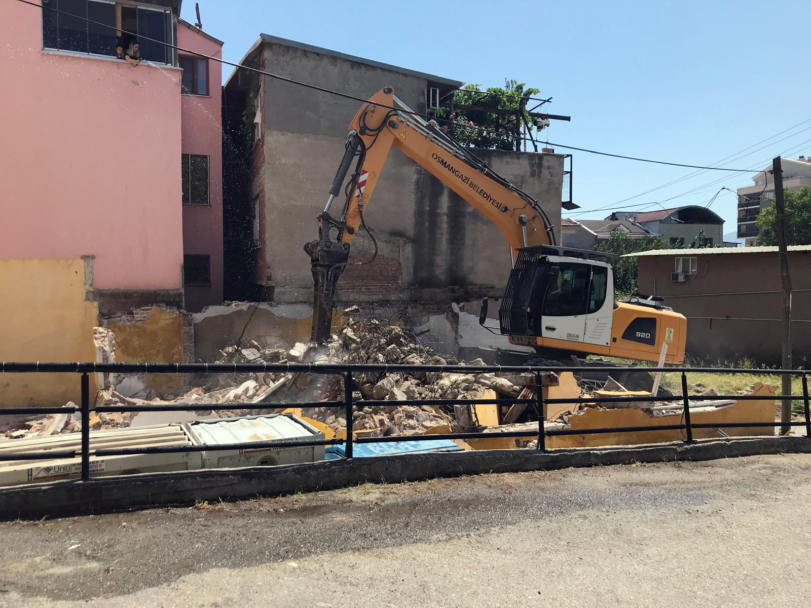 Osmangazi Belediyesi, kamuya ait arazi üzerine kaçak olarak inşa edildiği belirlenen gecekonduyu yıktı. Madde bağımlılarının uğrak yeri olan gecekondunun yıkılması, mahalle sakinlerinin yüzünü güldürdü.