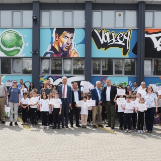 Osmangazi Belediyesi ve Gençlik Spor İl Müdürlüğü işbirliğinde düzenlenen ‘Kort Tenisi Eğitimi’ kursuna katılan 340 NOSAB İlkokulu öğrencisine ücretsiz olarak temel tenis eğitimi verildi. Osmangazi Belediyesi Ertuğrul Sağlam Spor Tesisleri’nde düzenlenen kursa katılan çocuklar, haftanın 5 günü uzman antrenörler ile antrenman yapma fırsatı buldu. Kursta belli bir seviyeye ulaşan ve yapılan seçmelerde başarı sağlayan çocuklar, Osmangazi Belediyespor bünyesindeki performans gruplarıyla eğitimlerine devam etmeye hak kazandı. Altyapıya seçilen çocuklar, 2023-24 sezonunda il genelinde düzenlenen resmi turnuvalarda altın, gümüş ve bronz madalya kazanma başarısı gösterdi. Kort Tenisi Eğitimi’ni başarıyla tamamlayan öğrenciler, için Ertuğrul Sağlam Spor Tesisi’nde sertifika töreni düzenlendi. Öğrenciler sertifikalarını Osmangazi Belediyesi Başkan Yardımcısı Mutlu Esendemir ve Osmangazi Belediyespor Yönetim Kurulu Başkanı Fatih Karayılan’ın elinden aldı.