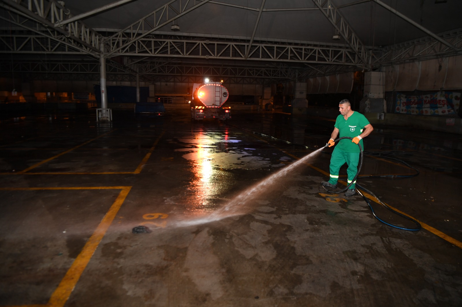 Osmangazi Belediyesi, kurban kesim alanı olarak düzenlenen ilçe genelindeki 23 kapalı ve açık pazar yerinde, gecenin ilerleyen saatlerine kadar temizlik çalışması yapıyor. Dezenfekte edilen kesim yerleri, bayram süresince kurbanını kesecek vatandaşlar için hijyenik hale getiriliyor.