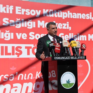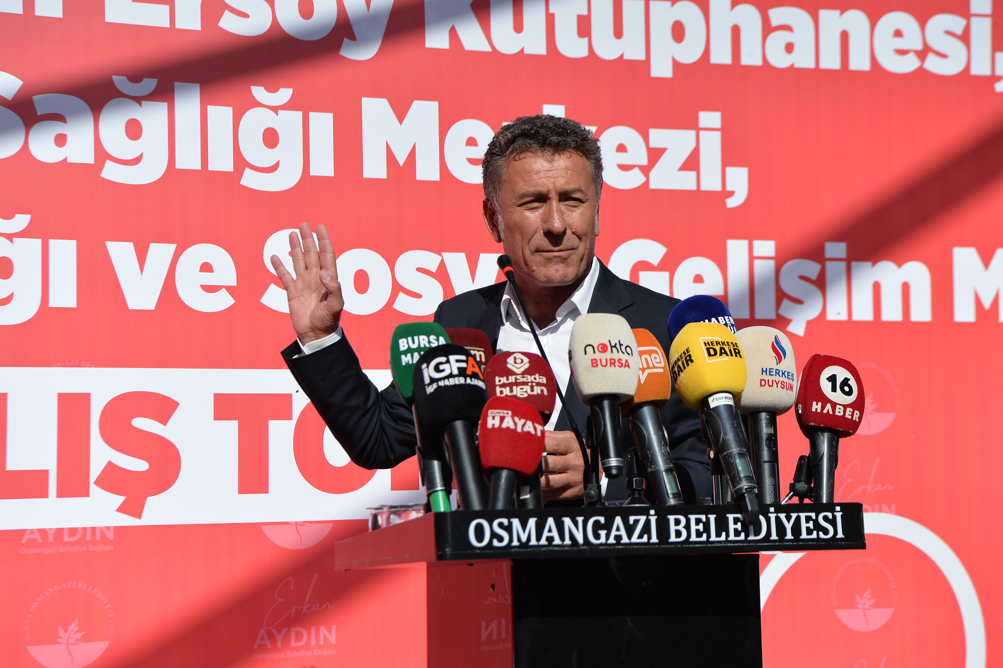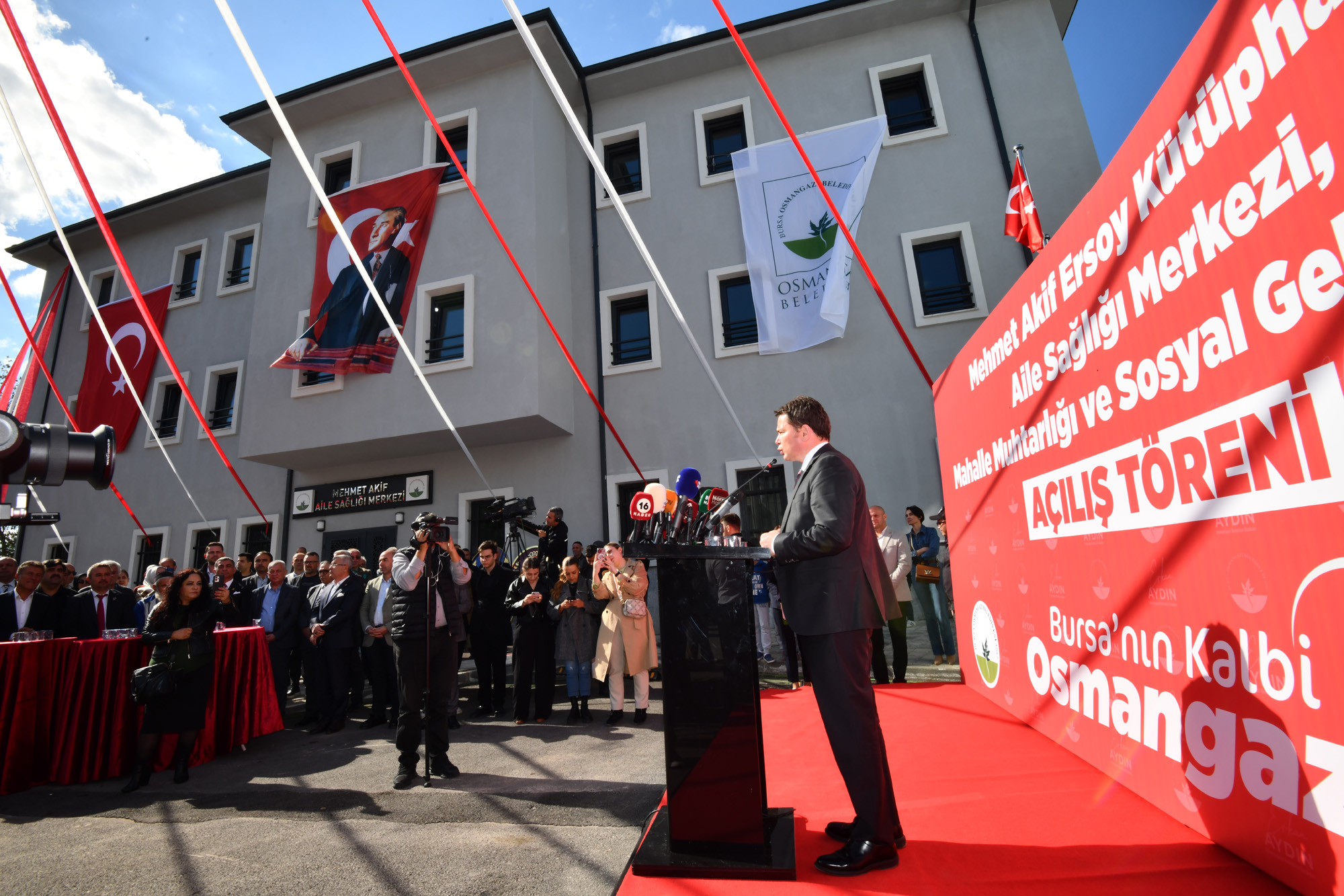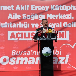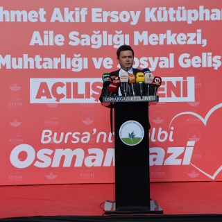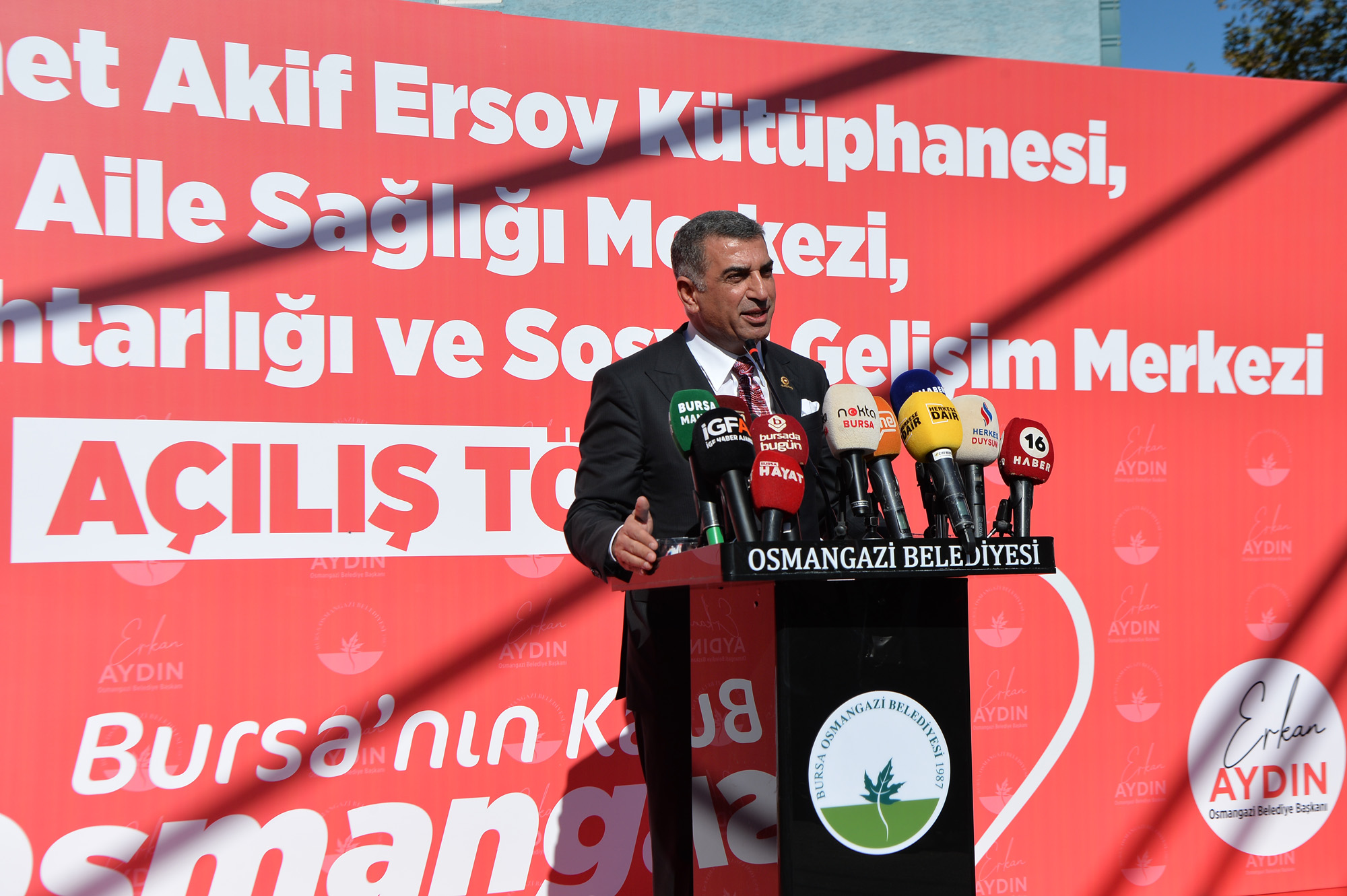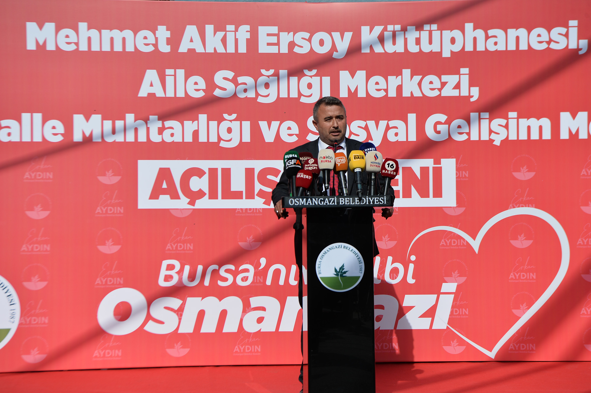 Osmangazi belediye Başkanı Erkan Aydın, açılış töreninde yaptığı konuşmada, 6 buçuk ay gibi kısa bir sürede 18’inci temel atma ve açılışı gerçekleştirdiklerini söyledi. Son zamanlarda her günü bir açılış ve temel atma yaparak geçirdiklerini ifade eden Başkan Aydın, “Aile sağlığı merkezi, muhtarlık binası, kütüphane ve sosyal gelişim merkezi gibi sosyal belediyeciliğin en güzel örneklerinin yer aldığı Mehmet Akif Hizmet Binası’nı hizmete açıyor olmanın mutluluğunu yaşıyoruz. 29 Ekim’e kadar açılış ve temel atmalarımız devam edecek. Toplamda 21 açılış ve temel atma gerçekleştireceğiz. Seçimden önce bizlere en büyük projeleriniz ne diye sorduklarında, bizim mega projelerimiz yok en büyük projemiz anlayışı değiştirmek olacak dedik. Gidip milyarlarca parayı heba etmeyeceğiz, onun yerine spor tesisleri, kütüphaneler, kreşler ve sosyal alanlar gibi halka dokunan, insanların kendini mutlu hissedeceği tesisler ve hizmetler yapacağız dedik. Çok şükür halkımıza verdiğimiz bu sözleri bir bir yerine getiriyoruz. Vakit çok hızlı geçiyor. Bunu bildiğimiz için hızlı davranıp, Osmangazi’de yaşayan yurttaşlarımızın mutlu olması adına çaba sarf ediyoruz. Bugün açılışını yaptığımız Mehmet Akif Hizmet Binası’nın mahallemize, Osmangazi’ye ve Bursa’ya hayırlı olmasını diliyorum” dedi.