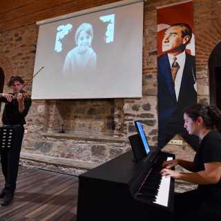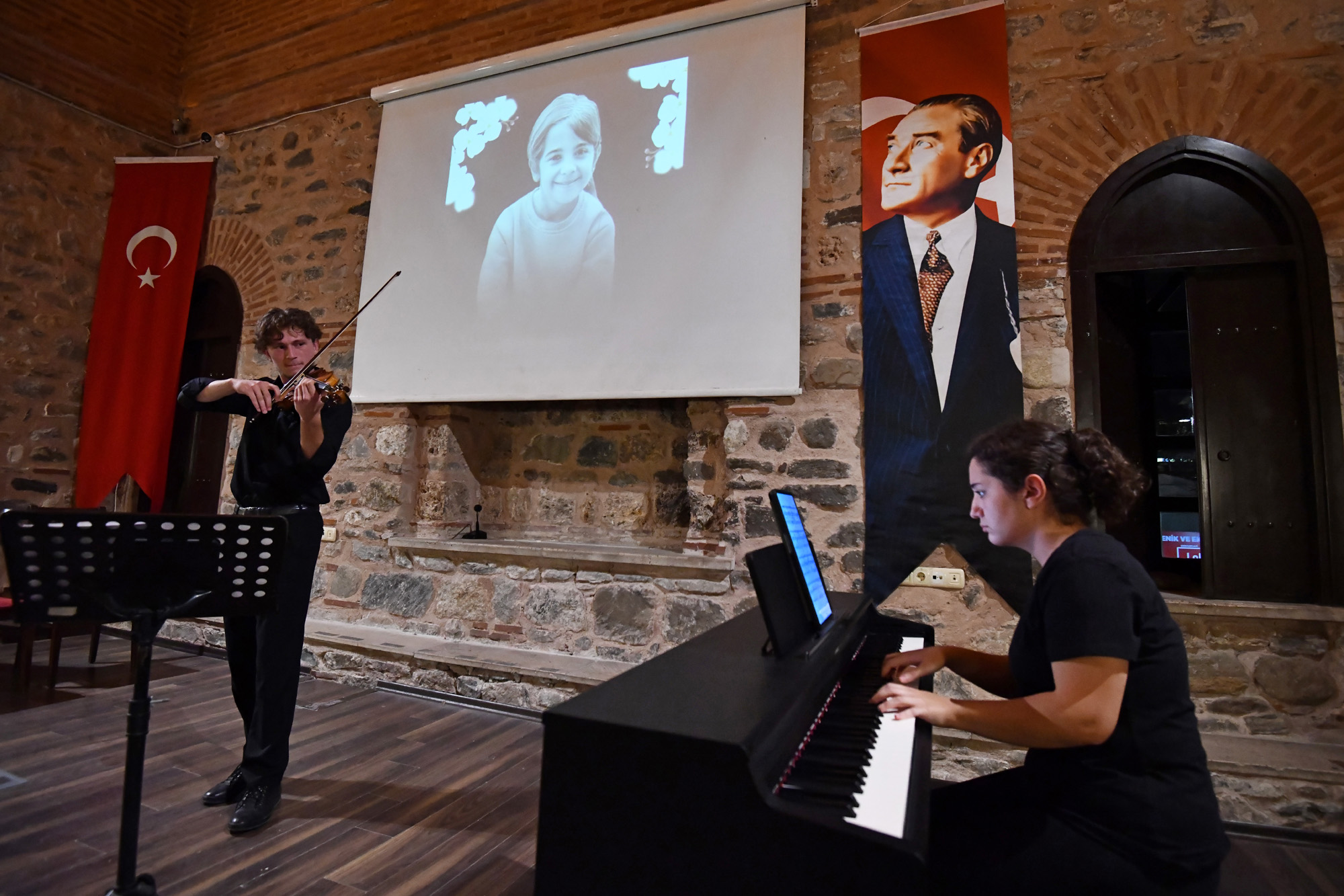 Ördekli Kültür Merkezi’nde her hafta düzenlenen Oda Orkestrası Konseri’nin bu haftaki sahnesi, Diyarbakır’da canice katledildikten sonra cansız bedeni 19 gün sonra bulunan Narin Güran’a ‘Ağıt’ temasıyla gerçekleştirildi. Keman sanatçıları Sıla Arsever ve Rasim Yokuş, piyano sanatçısı Mehmet Bütün, gitar sanatçısı Salthan Uğur ve viyolonsel sanatçısı Harun Yılmaz, bu haftaya özel olarak hazırladıkları repertuarda bulunan duygu dolu eserleri, küçük Narin için çaldı. Ölüm haberiyle tüm Türkiye’yi yasa boğan Narin’in yad edilmesi nedeniyle daha da anlam kazanan konsere, Osmangazili sanatseverlerin ilgisi büyük oldu. Konser boyunca küçük Narin’in fotoğrafı sahneye yansıtıldı. Narin’in fotoğrafının altında enstrümanlarını çalan sanatçılar, konsere gelen dinleyicilere hem müzik ziyafeti sundu, hem de duygusal anlar yaşattı.