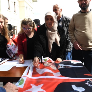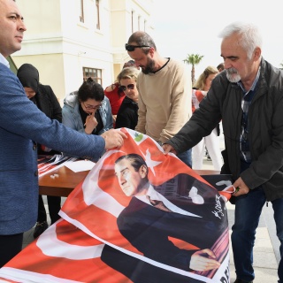 Dağıtılan bayraklardan alan vatandaşlar, Başkan Aydın’a teşekkür etti.