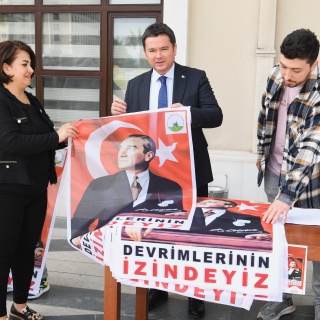 Osmangazi Belediye Başkanı Erkan Aydın da belediye binasına gelen vatandaşlara Ata posteri hediye etti. 19 Mayıs’ta Osmangazi’yi Atatürk ve Türk Bayraklarıyla donatacaklarını ifade eden Başkan Aydın, “19 Mayıs Atatürk’ü Anma ve Gençlik Bayramı’nda Osmangazi’yi Atatürk ve Türk bayraklarıyla donatarak bayramımızı kutlayacağız. Atatürk’ün gençliğe armağan ettiği ve kurtuluş mücadelesini başlattığı gün olan 19 Mayıs’ı Osmangazi ve Bursa’ya yakışır bir şekilde kutlayacağız. Haluk Levent, Emre Kaya ve Reckol konserinin yanı sıra sokak basketbolu ve masa tenisi etkinlikleriyle gençlerimize hediye edilen bu güzel bayramı coşku içinde kutlayacağız” dedi.