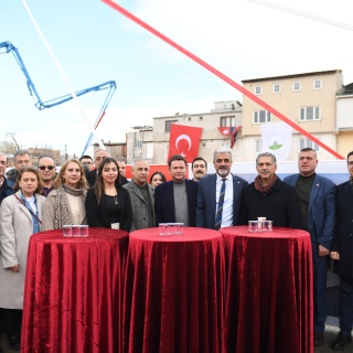 Konuşmaların ardından Başkan Aydın ve protokol üyelerinin butona basmasıyla birlikte kreş temeline ilk harç döküldü