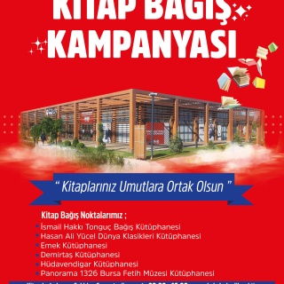 Kitap bağışı kampanyasına katılmak isteyenler, kütüphanelerin kapalı olduğu Pazar ve Pazartesi günleri hariç diğer günlerde saat 09.00 ile 16.00 arasında Hasan Ali Yücel Dünya Klasikleri Kütüphanesi, Emek Kütüphanesi, Panorama 1326 Bursa Fetih Müzesi Kütüphanesi, Demirtaş Kültür Merkezi Kütüphanesi, Hüdavendigar Kütüphanesi ve İsmail Hakkı Tonguç Bağış ve Şiir Kütüphanesi’ne kitaplarını teslim edebilirler.