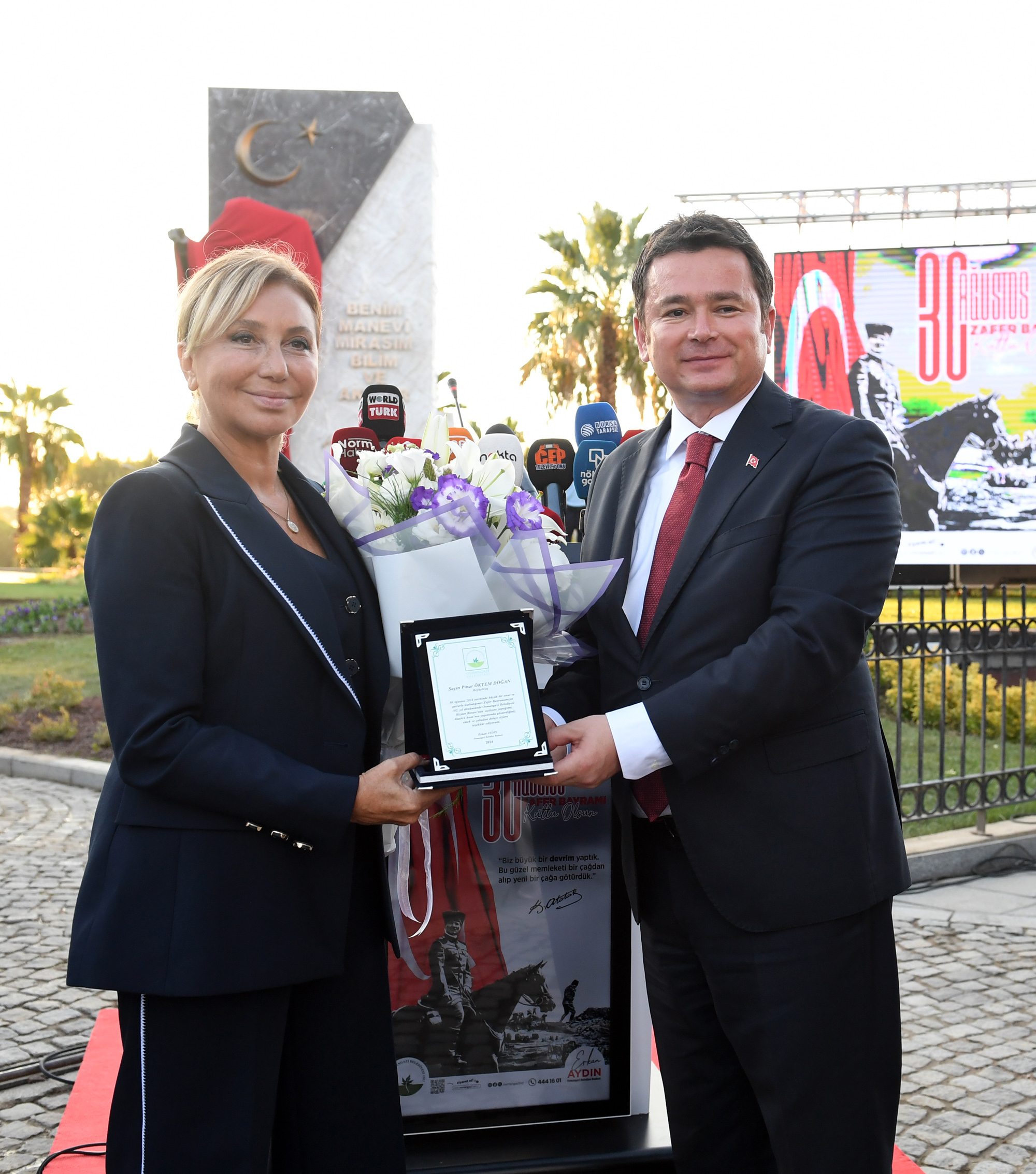 Atatürk’ün de geleceği işaret ettiğine dikkat çeken Başkan Aydın, “O’nun işaret ettiği yer de kaideye ‘Benim manevi mirasım bilim ve akıldır’ sözüyle yazıldı. Atatürk, Selçuklu Devleti’nin nasıl yıkıldığını çok iyi okumuş, etüt etmiş, Osmanlı’nın nasıl yıkıldığını bizzat yaşamış dolayısıyla Türkiye Cumhuriyeti’nin de ilelebet payidar kalabilmesi için en tepeye bilimi, akılı ve muasır medeniyetler seviyesine erişmeyi hedef koymuş. Bu hedef doğrultusunda bu heykel ve anıt burada inşallah ölümsüzleşecek. Biz 30 Ağustos Zafer Bayramı’nı bir ormancılık günü, diğer bir gün olarak değil bu ülkenin var olma meselesi olarak görüyoruz. Bundan sonra da öyle göreceğiz. Atatürk, bu riskli operasyon büyük taarruza başlarken hocasının karşı çıkmasına rağmen, belki de bağımsızlığımızın son günü olabilir diyerek, o büyük taarruzu düşmanında hiçbir şekilde hasep edemediği şekilde başlatıp, Fatih Sultan Mehmet’in de tarihte söylediği gibi Hector’un da intikamını aldık diyerek sonlandırıyor. Truva savaşındaki Hector, intikamını aldık der kayıtlara o şekilde geçer, bize seçimden önce sorduklarında hep aynı cevabı veriyorduk, birçok iş yapacağız ama öncelikle anlayışı değiştireceğiz. Osmangazi’de anlayışı değiştireceğiz dedik ve seçildiğimiz ilk günden itibaren bu anlayışı değiştirmenin ürünleri olan hizmetleri hayata geçirmeye başladık. Bundan sonrada bu hizmetlere devam edeceğiz.” ifadelerini kullandı.