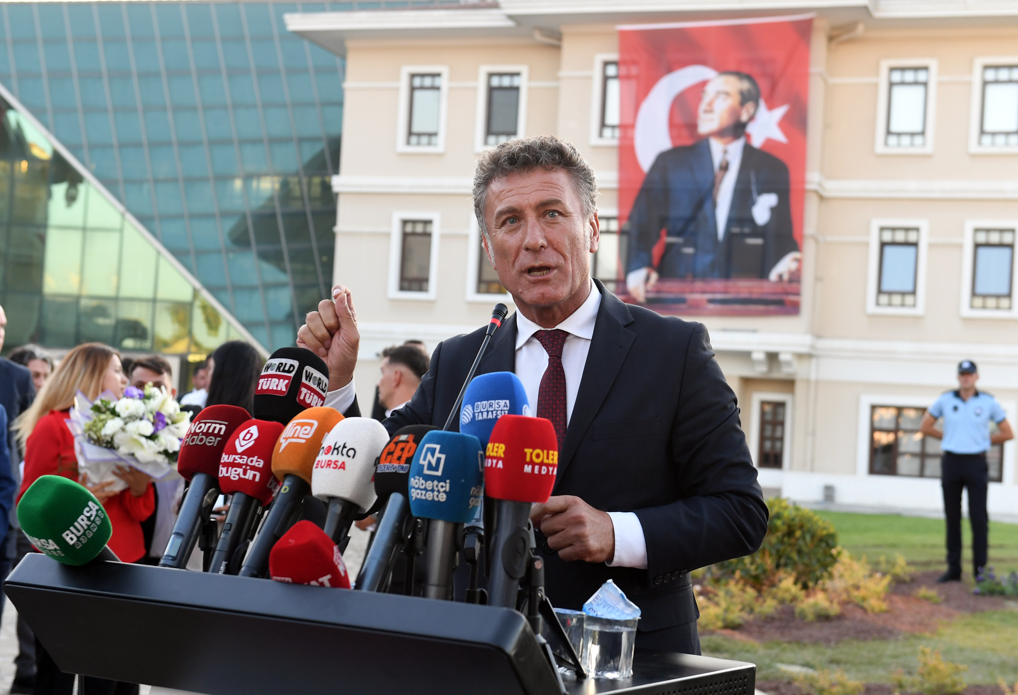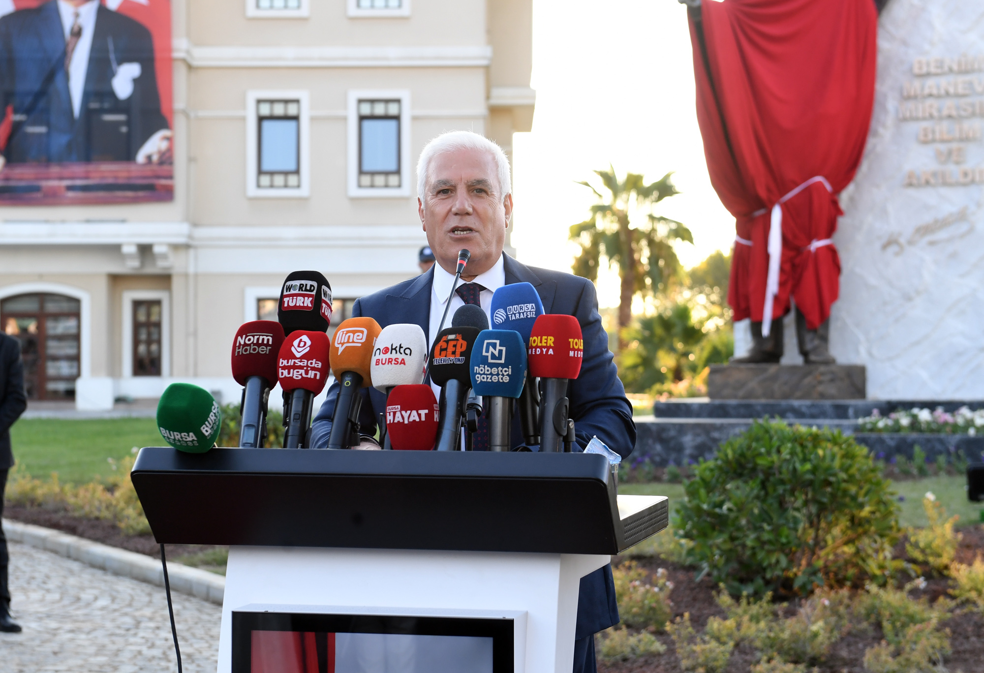 Açılış töreninde konuşan Osmangazi Belediye Başkanı Erkan Aydın, 30 Ağustos gibi önemli bir günde önemli bir açılışa ev sahipliği yapmanın gururunu yaşadıklarını belirterek, “Belediyemizin bahçesinde Osman Gazi heykeli vardı. Osman Gazi de bizim önemli bir değerimiz. Belediyenin bahçesindeki Osman Gazi heykeli eliyle bir yeri işaret ediyordu. Dedik ki, işaret ettiği yerde Türkiye Cumhuriyeti’nin kurucusu Gazi Mustafa Kemal Atatürk olması gerekir. Bu ana fikirden yola çıktık, Atatürk’ü Osmanlı Devleti’nin kurucusunun işaret ettiği yerde Türkiye Cumhuriyeti’nin kurucusu olarak burada ölümsüzleştirmeye karar verdik, emeği geçenlere ayrı ayrı teşekkür ediyorum.” dedi.