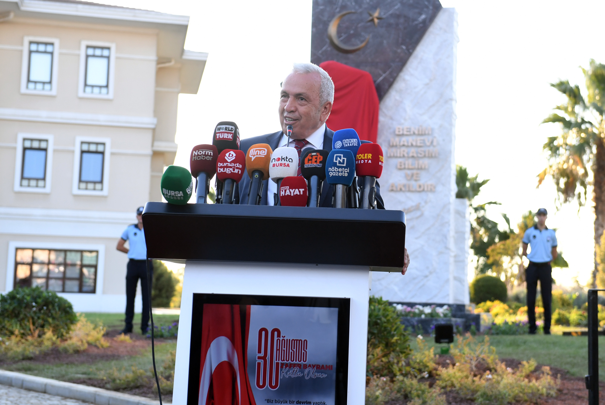 Bursa Büyükşehir Belediye Başkanı Mustafa Bozbey de Başkan Erkan Aydın başta olmak üzere emeği geçenleri kutlayarak, “30 Ağustos Zafer Bayramı’mız kutlu olsun. Bu hepimizin bayramı Türkiye Cumhuriyeti’nde yaşayan her bir kişinin içselleştirerek kutlaması, anması gerektiğini ve nereden nereye geldiğine inanıyorum. Bu önemli günde, bu güzel eser Osmangazi ve Bursa’ya çok yakıştı” diye konuştu.