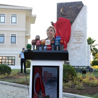 Atatürk anıtının yapımcısı Heykeltıraş Pınar Öktem Doğan da yaptığı konuşmada, “Zafer Bayramı, Türk Milleti’nin bağımsızlık ve özgürlük mücadelesinde elde ettiği büyük zaferin kutlandığı en önemli günümüzdür. Bu önemli günde Atatürk’ü zaferimizi anmak ve gelecek kuşaklara bırakmak üzere yapılan bu eser Atatürk’ün kahramanlığını kararlığını ve liderliğini bizlere anlatmaktadır. Onun önderliğinde Türk Milleti, 30 Ağustos’ta Dumlupınar Meydan Muharebesi’nde bütün gücünü ortaya koyarak zaferi kazanmıştır. Eser, bu büyük zaferi ve Atatürk’ün ölümsüz mirasını gelecek nesillere aktarmak amacıyla yapılmıştır. Onun şahsında Türk Milleti’nin bağımsızlık ve özgürlük için verdiği mücadeleyi simgelemektedir. Bu heykel gelecek kuşaklara büyük önderimizin mirasını ve 30 Ağustos Zafer Bayramı’nın önemini hatırlatmak adına önemli bir semboldür. Eserde Atatürk’ün kucağındaki kız çocuğu geleceği simgelemektedir. Onların üzerinde Türk Bayrağı ve yükselen ay yıldız Cumhuriyeti, onu dalgalar halinde göğe yükselten kayalar ise Türk Milleti’nin yenilmez gücünü bizlere göstermektedir. Kaidenin altındaki çiçekler ise gelecek nesillerimize çiçekler gibi açan çocuklarımızdır. Bu eseri burada meydana getirmemizin bize onurunu yaşatan Osmangazi Belediye Başkanımız Erkan Aydın ve çok emeği olan Belediye Başkan Yardımcımız Mutlu Esendemir’e çok teşekkür ediyorum.” şeklinde konuştu.