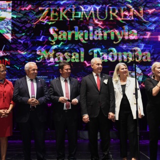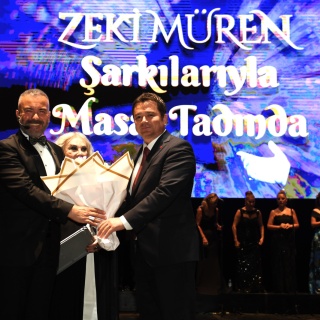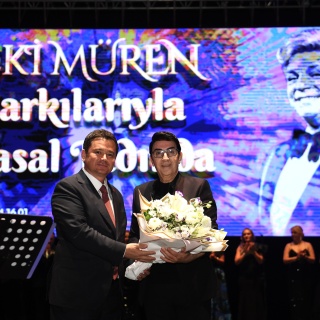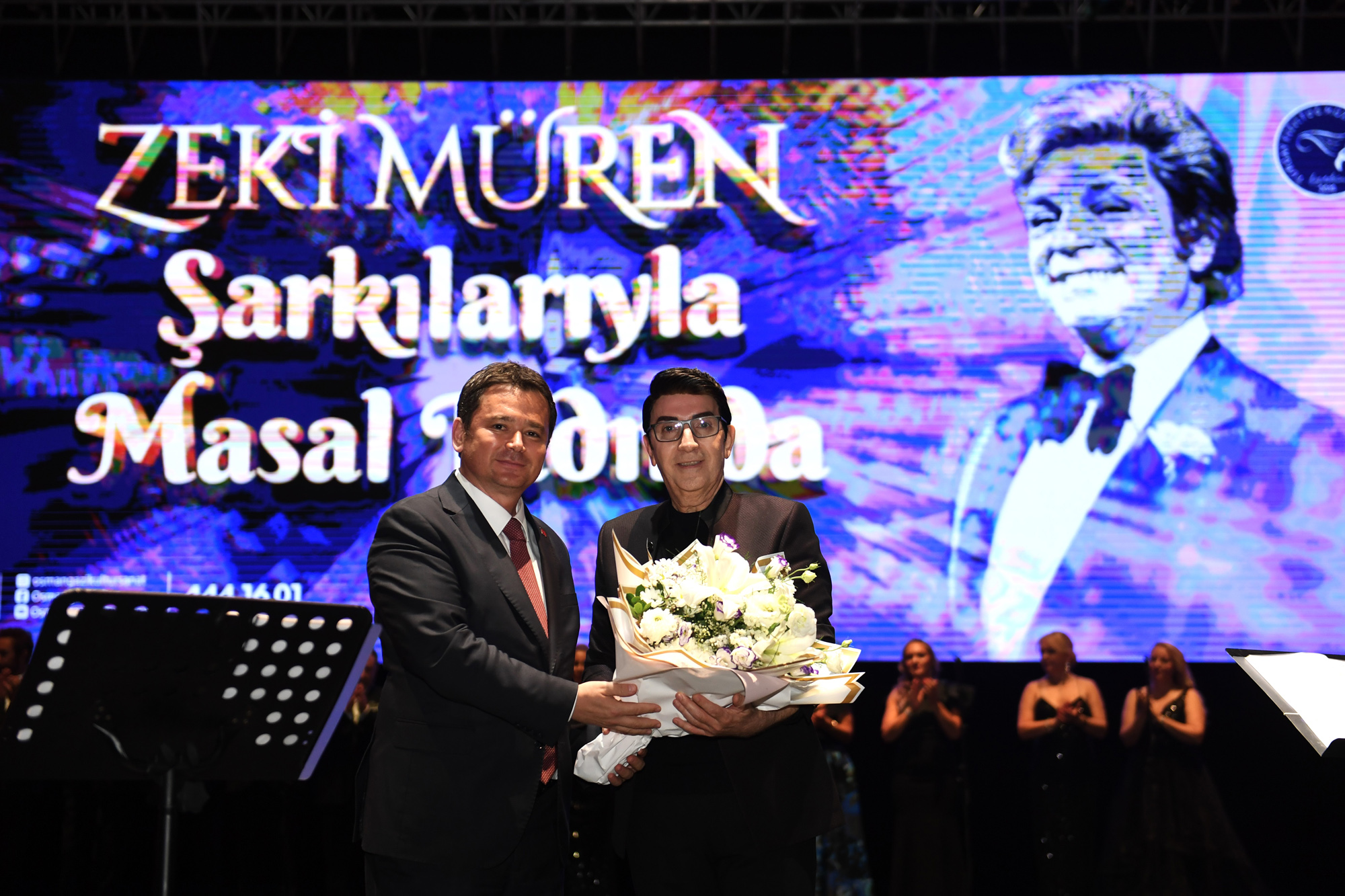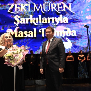 Gecenin sonunda Başkan Aydın, Zeki Müren’in yeğeni Özlem Güner, Şef Turgay Kızıltuğ ve Dr. Turgay Mercan’a teşekkür çiçeği verdi.