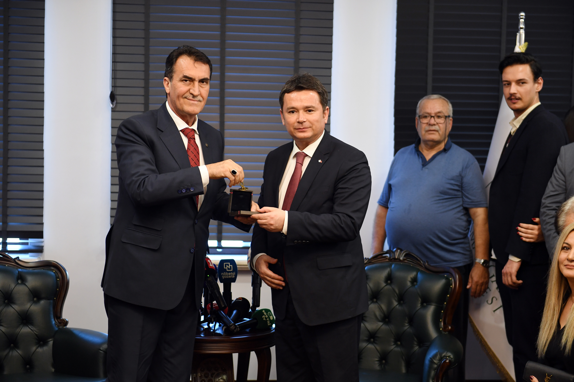 Başkanlık makamında konuşan önceki dönem Osmangazi Belediye Başkanı Mustafa Dündar, “2 aydır bir seçim süreci geçirdik. Yoğun ve güzel bir süreç yaşadık. Erkan Başkanımla 3. defa karşı karşıya geldik ve bu süreçte karşılıklı saygı çerçevesinde karşılaştık. Sonuçta sandığa gidiyorsunuz ve son sözü vatandaş söylüyor. Sandıktan çıktıktan sonra tekrar görevdeyiz diye sürekli söyledikçe kamuoyu hep garanti olarak baktı bize ama sandığın dediği budur vatandaş ne diyorsa başımızın üzerindedir. Erkan Başkanımıza yeni görevi hayırlı olsun diyoruz” dedi.
