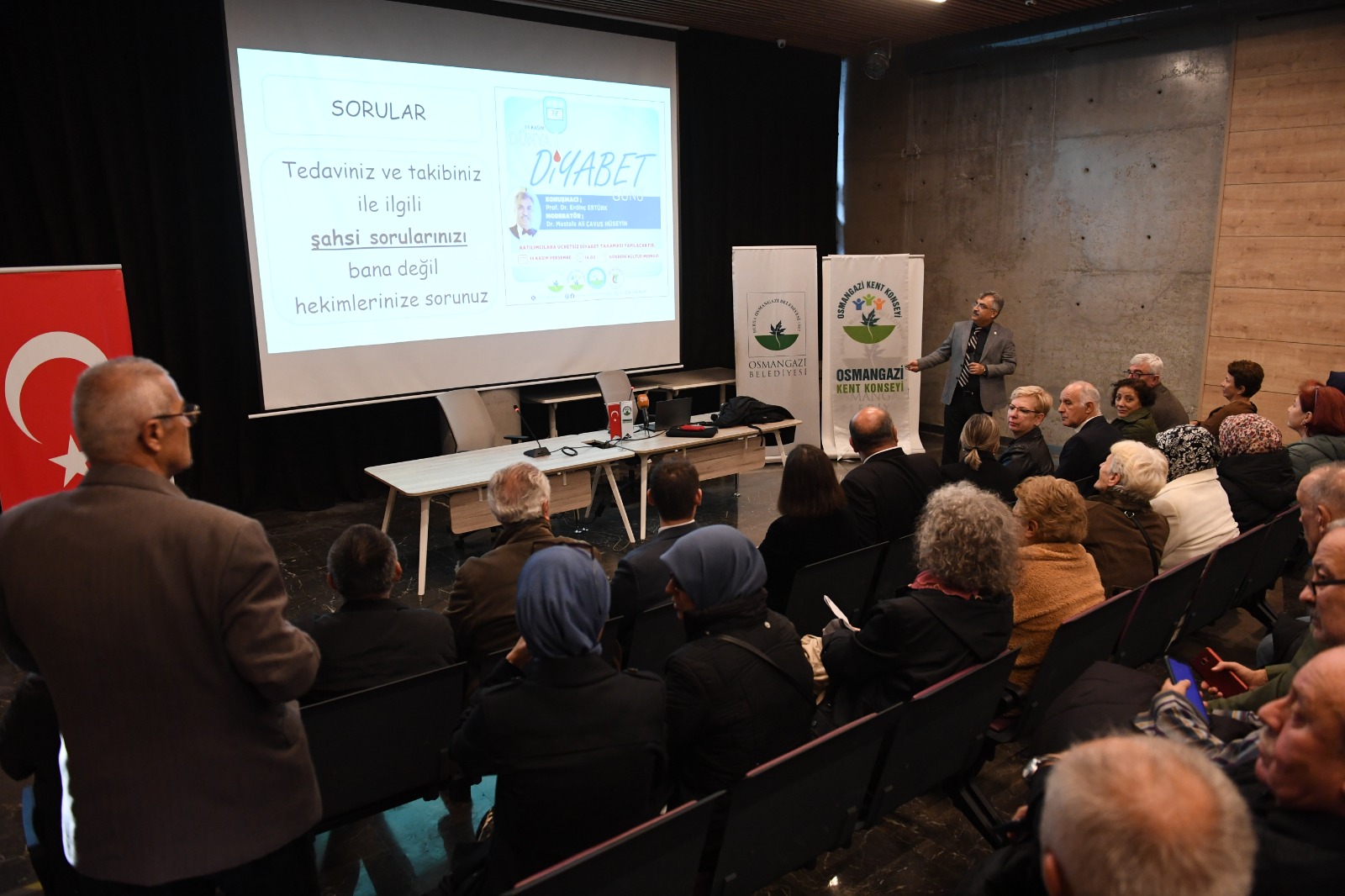 Osmangazi Belediyesi ve Osmangazi Kent Konseyi işbirliğinde gerçekleştirilen ‘14 Kasım Dünya Diyabet Günü’ etkinliğinde, Endokrinoloji Uzmanı Prof. Dr. Erdinç Ertürk diyabet hastalığı hakkında önemli açıklamalarda bulundu. Panorama 1326 Bursa Fetih Müzesi’nde gerçekleştirilen etkinlikte, halk arasında şeker hastalığı diye bilinen ve artık her yaştan insanda görülmeye başlanan diyabet hakkında doğru bilinen yanlışlar üzerinde duran Prof. Dr. Ertürk, şeker hastası olduğunu düşündürecek hiçbir belirti yaşamayan insanlarında da şeker hastalığına yakalanma riski taşıdığını ifade etti. Dr. Ertürk, “Şeker hastalığı, çoğunlukla belirti vermez. Belirtiler genellikle açlık kan şekeri çok yüksek olduğu zaman ortaya çıkar. Açlık kan şekeri değeri 125’in üzerine çıkıyorsa o kişi şeker hastasıdır. Açlık şekeri değerinin 125’in üzerine çıkmasıyla birlikte gözlerde ve böbreklerde olumsuz etkiler başlıyor. Çok fazla kişide hiçbir belirti olmamasına rağmen şeker hastalığı tespit edilmiş. Açlık kan şekeri değerinin 100’ün altında olması idealdir” dedi.