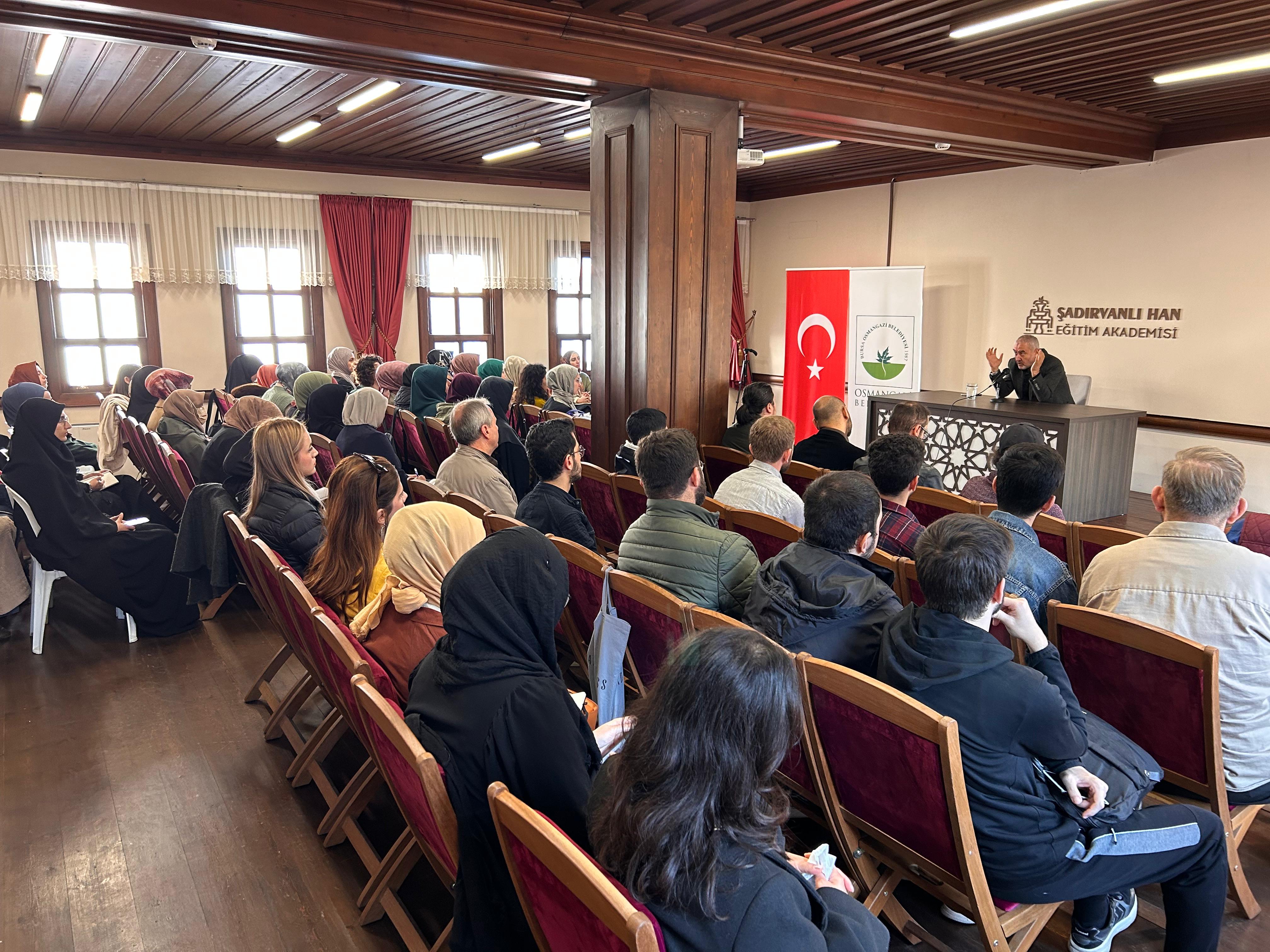 Şadırvanlı Han Eğitim Akademisi’nde Prof. Dr. Adem Apak tarafından yaklaşık dört yıldır gerçekleştirilen Akademik Okuma ve Yazma Semineri’nin bu haftaki programına, mülakatla seçilen, lisans ve lisansüstü öğrencilerle konuya ilgi duyan araştırmacılar katıldı. 2024-2025 Güz Dönemi kapsamında düzenlenen programın ilk dersinde, Akademik metin nedir? Aktüel yazılarla akademik metinlerin farkı nedir? Bir metin akademik bakış açısıyla nasıl okunur? Bu okumanın normal okumadan farkı nedir? Akademik kriterlere göre bir metin nasıl inşa edilir? İstidat ve kabiliyet nasıl keşfedilir ve ne şekilde geliştirilir? Kelime hazinesi nasıl zenginleşir? Soruları etrafında bir fikir oluşturulmaya çalışılarak, sonraki oturumlarda yapılacaklar değerlendirildi ve bir yol haritası çizildi.