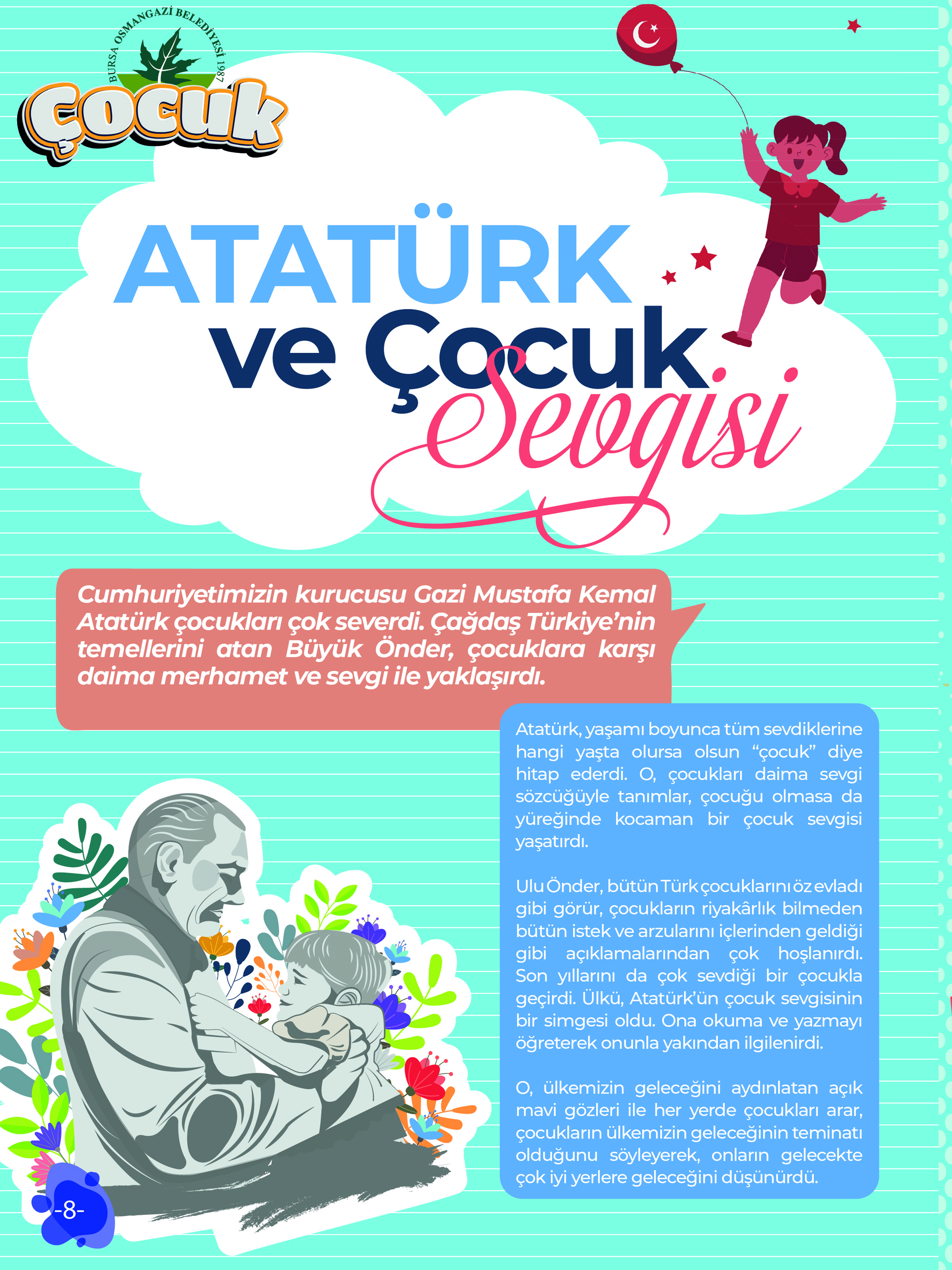 Ülkenin aydınlık geleceği çocukların hem eğlenmeleri hem de birçok farklı konuda bilgi dağarcıklarını geliştirmeleri adına Osmangazi Çocuk dergisini çıkardıklarını ifade eden Osmangazi Belediye Başkanı Erkan Aydın, “Yarınlarımızın mimarı olan çocuklarımızdan aldığımız güç ve yolumuza ışık saçan ilhamla yılmadan, yorulmadan çalışmaya devam edeceğiz. Bizleri bekleyen aydınlık geleceği kimlerden emanet aldığımızı unutmadan Cumhuriyetimizin Kurucusu Ulu Önder Gazi Mustafa Kemal Atatürk’ün hedef gösterdiği çağdaş ve laik ülke olma idealine doğru emin adımlarla ilerlerken en büyük güvencemiz yine çocuklarımız olacak. Erkan Amcaları olarak, çocuklarımıza yönelik sonsuz sevgi ve inanç taşıyorum. Yaşamları boyunca Atatürk’ün açtığı yola ve gösterdiği hedefe ulaşmak için ellerinden gelenin en iyisini yapmaya çalışacaklarını biliyorum. Yaşam yolculuğunuz boyunca hangi zorlukla karşılaşırsanız karşılaşın asla pes etmeyin, hayallerinizin peşinden gitmekten vazgeçmeyin. Güzel ülkemiz, sizin sayenizde yükselmeye ve gelişmeye devam edecek” dedi.