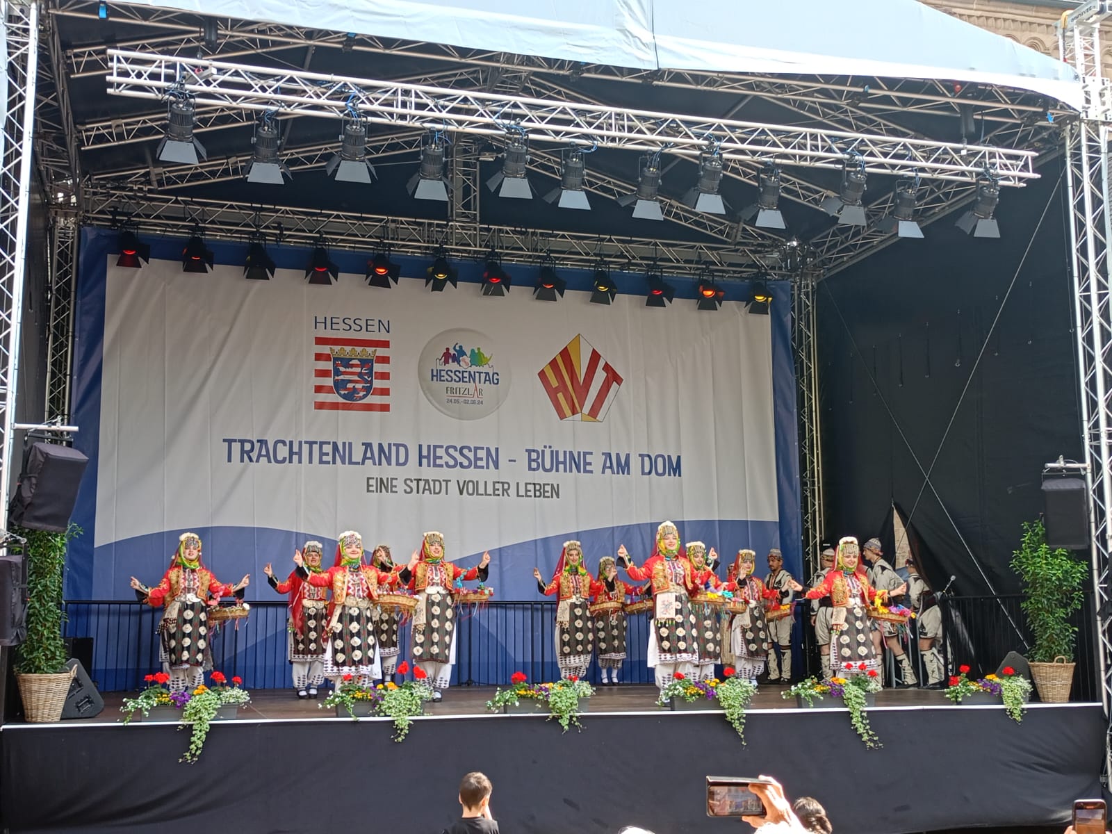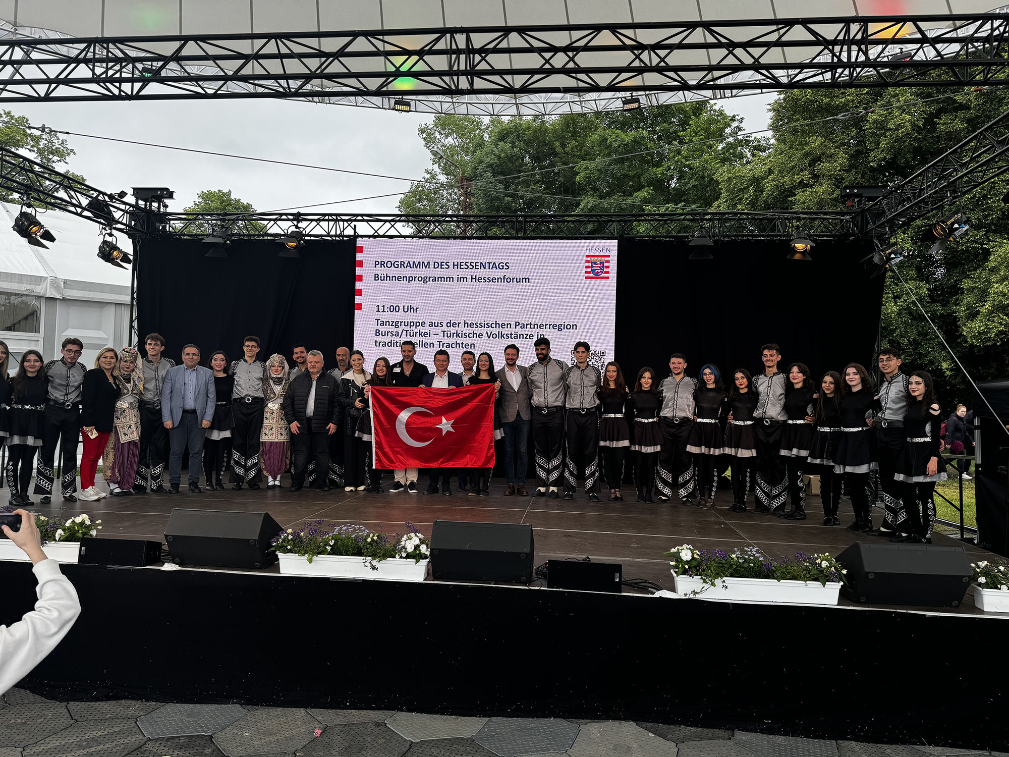 Hessentag 2024 Festivali’ne damga vuran grup ise Osmangazi Halk Dansları Topluluğu oldu. Treffpunkt Hessen’de (Hessen Buluşma Noktası) sahne alan Osmangazi Halk Dansları Topluluğu, sunmuş olduğu gösteri ile izleyicilerin beğenisini kazandı. Yaklaşık 1 saat sahnede kalan Osmangazi Halk Dansları Topluluğu’nun özellikle ‘Adım adım Türkiye’ adlı gösterisi yabancı konuklar tarafından büyük ilgi görürken, bölgede yaşayan Türklere ise duygusal anlar yaşattı. Gösterilerinin sonunda sahnede Türk Bayrağı açan Osmangazi Halk Dansları Topluluğu ekipleri, gurbetçi vatandaşların vatan özlemini bir nebze de olsa dindirdi.