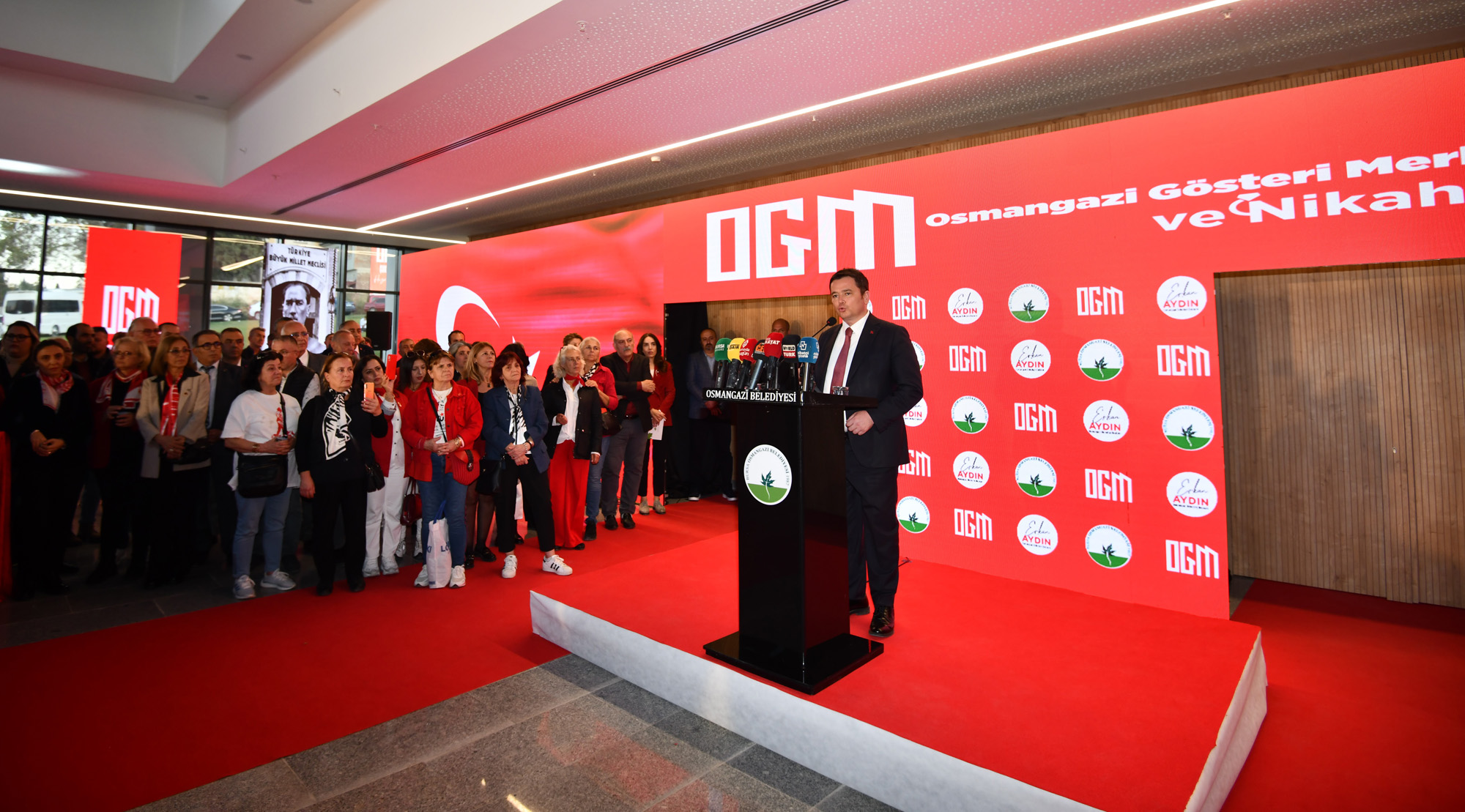 Osmangazi Belediyesi, 29 Ekim gibi anlamlı bir günde açılışını yaptığı Osmangazi Gösteri Merkezi ve Nikah Evi ile Cumhuriyet Bayramı coşkusunu taçlandırıldı. Bursa’nın kültürel ve sosyal yaşamına katkı sunacak olmasının yanı sıra evlenmek isteyen çiftlerin de mutluluğa ‘evet’ diyecekleri mekan olan Osmangazi Gösteri Merkezi ve Nikah Evi, Osmangazililerin hizmetine sunuldu. Osmangazi Meydanı’nda yer alan Osmangazi Gösteri Merkezi ve Nikah Evi’nin açılış törenine; Osmangazi Belediye Başkanı Erkan Aydın’ın yanı sıra CHP Bursa Milletvekilleri Orhan Sarıbal, Nurhayat Altaca Kayışoğlu, Hasan Öztürk, CHP Parti Meclis Üyesi Canan Taşer, CHP Bursa İl Başkanı Nihat Yeşiltaş, CHP Osmangazi İlçe Başkanı Cengiz Çelikten, belediye başkan yardımcıları, belediye meclis üyeleri, muhtarlar ve davetliler katıldı.
