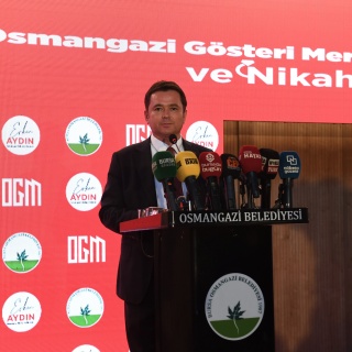 Osmangazi Belediye Başkanı Erkan Aydın, Osmangazi Gösteri Merkezi ve Nikah Evi’nin açılış töreninde yaptığı konuşmada, “Büyük Önder Mustafa Kemal Atatürk, Cumhuriyet’i o kadar sağlam temellere oturttu ki emperyalistler 101 yıldır yıkıp, parçalamaya çalışsa da başarılı olamıyor. Atatürk, 29 Ekim’i tesadüfen seçmedi. 30 Ekim 1918’de Mondros Mütarekesi imzalandığında Avrupalılara ve Emperyalistlere Türkiye Cumhuriyeti 5 yıl işgal atında kaldı dedirtmemek için bir gün öncesinde yani 29 Ekim 1923’te Cumhuriyeti ilan etti. Emperyalistlere, onların anladığı dilde cevap verdi. Nüfusun neredeyse yüzde 99’u okuma yazma bilmeyen, sanayisi olmayan, her tarafı işgal edilmiş bir toplumu kurtardı. Yetmedi, daha büyük hedeflere taşıdı. Bundan sonra da o hedefleri böldürmeyecek, yıprattırmayacak, zaruriyete uğrattırmayacak olanlar da gençlerimiz ve bizleriz. Cumhuriyeti onlar kurdu, bizler de hep birlikte yaşatacağız. Bir kez daha Büyük Önder Mustafa Kemal Atatürk ve silah arkadaşlarını saygı, minnet ve rahmetle anıyorum” dedi.