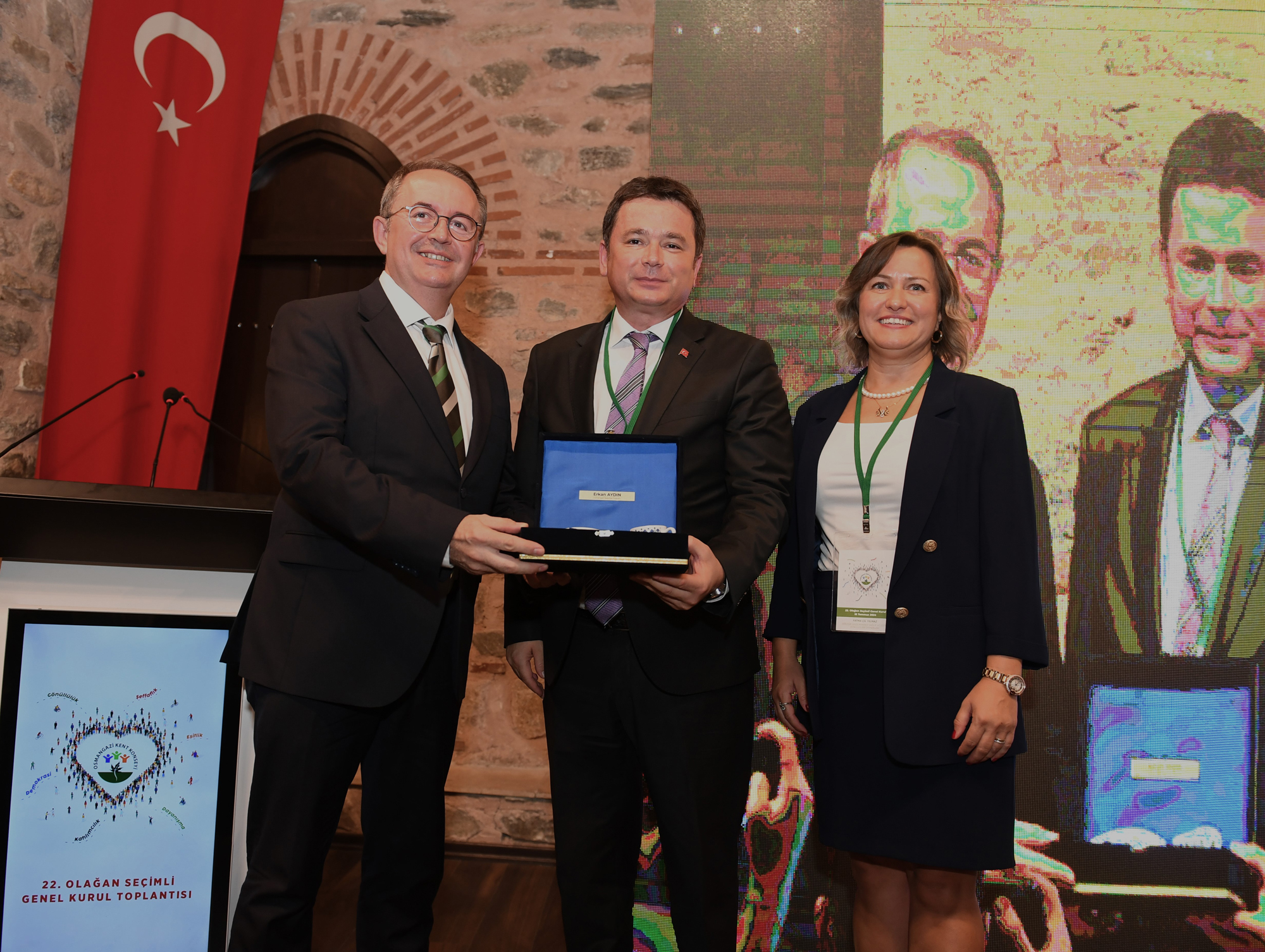Genel kurulun ardından Başkan Aydın, yeni başkan Fatma Çil Yılmaz ve yürütme kurulu üyeleriyle fotoğraf çektirdi.