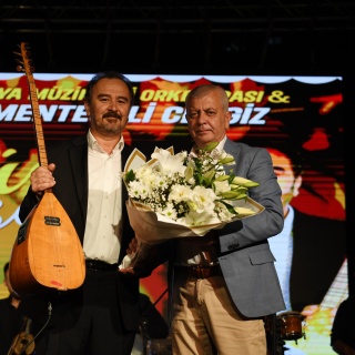 Konser sonunda Osmangazi Belediye Başkan Yardımcısı Mutlu Esendemir, usta sanatçı Menteşeli Cengiz’e çiçek takdim etti.