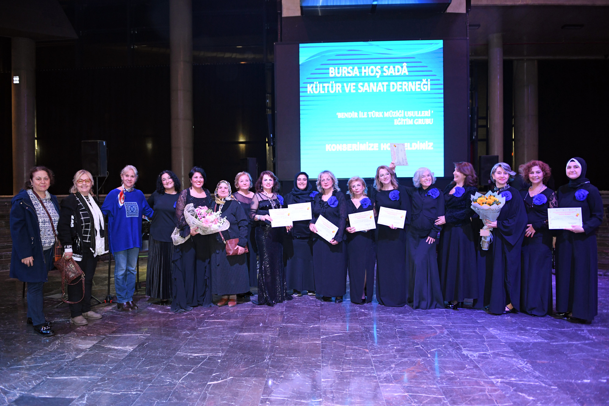 Konser sonunda, Bursa Hoş Sada Kültür ve Sanat Derneği Bendir Eğitim Gurubu tarafından verilen kursu başarıyla tamamlayarak 2, 3, 4, 5 zamanlı usulleri teorik ve uygulamalı olarak öğrenen müzisyenlere, “1.Seviye Bendir ile Türk Müziği Usulleri Eğitimi” sertifikası takdim edildi.