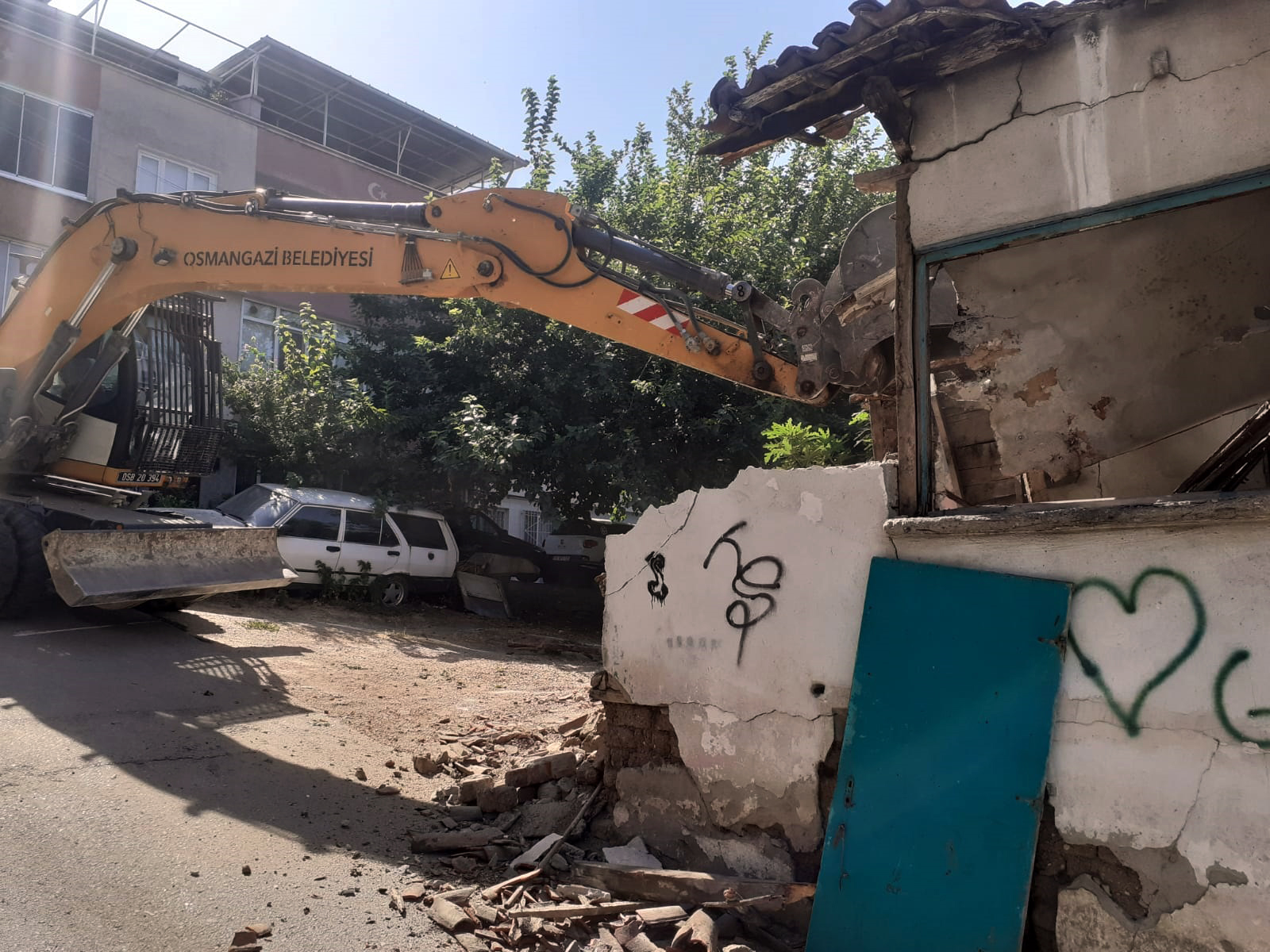 Osmangazi Belediyesi, Hamitler Mahallesi’nde madde bağımlıları tarafından kullanıldığı belirlenen metruk binayı yıktı.