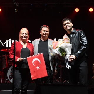 Konseri vatandaşlarla birlikte izleyen Osmangazi Belediye Başkanı Erkan Aydın, eşi Nadire Aydın ile birlikte sahneye çıkarak ünlü sanatçıya çiçek ve plaket takdim etti. Sahnede yaptığı konuşmasında TUSAŞ’a düzenlenen terör saldırınsa şehit olanları rahmet, minnet ve saygıyla anan Başkan Aydın, “Şehitlerimizin mekanı cennet olsun. Yaralılarımıza da Allah acil şifalar versin. Ülkemizi bölmek isteyen teröristlere asla geçit vermeyeceğiz. Cumhuriyetimizin 101’inci yılını meydanlarda, konser alanlarında ve sokaklarda büyük bir coşku ile kutluyoruz. İnşallah nice 101 yıllar daha kutlayacağız. Büyük Önder Mustafa Kemal Atatürk, Cumhuriyeti biz kurduk onu yaşatacak olanlar da sizlersiniz diyordu. Şimdi ben meydanı dolduran binlerce gencimize, Atatürk’ün dediği gibi Cumhuriyeti ilelebet yaşatmaya var mısınız? diye soruyorum” ifadelerini kullandı. Binlerce kişinin ‘Evet’ diye cevap vermesi üzerine Başkan Aydın, “Siz varsanız biz dünden varız. Cumhuriyetimizin 101’inci yılı kutlu olsun. İnşallah hep birlikte nice Cumhuriyet Bayramları kutlayacağız. Bizlere coşku dolu bir akşam yaşatan Emir Can İğrek’e de teşekkürlerimi sunuyorum” diye konuştu.