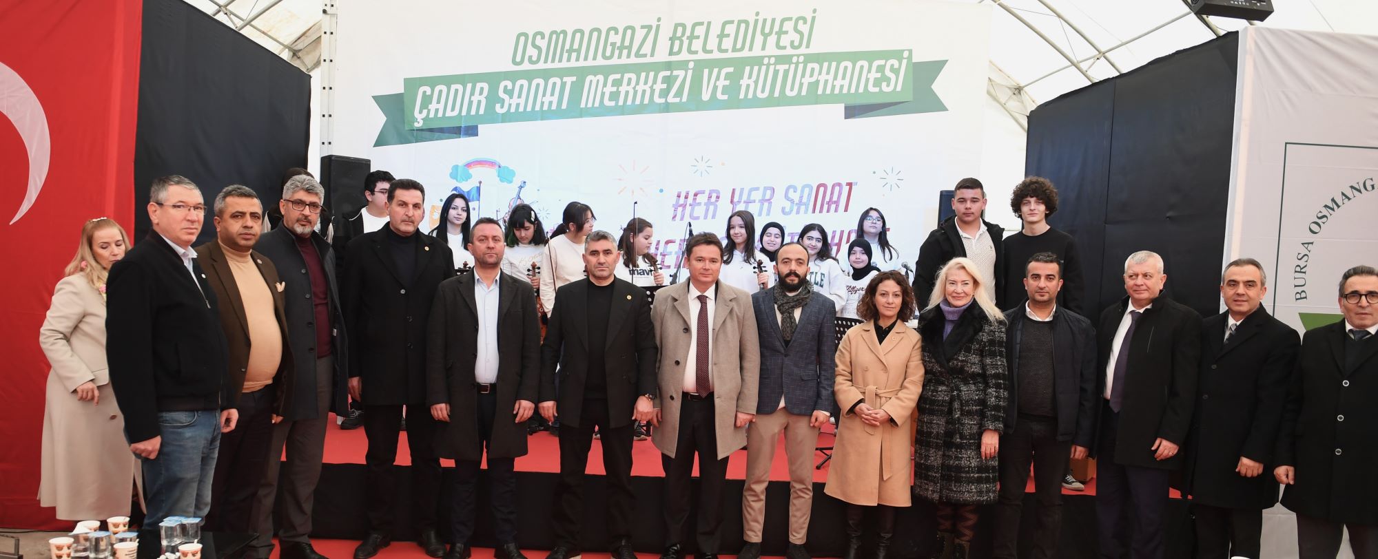 Osmangazi Belediyesi’nin sömestr tatili boyunca 2 mahallede kuracağı Çadır Sanat Merkezi ve Kütüphanesi’nde 7’den 70’e herkese eğlenerek güzel vakit geçirecek. Yunuseli Pazar Alanı’nda kurulan Çadır Kültür Sanat Merkezi ve Kütüphanesi’nin açılışını Osmangazi Belediye Başkanı Erkan Aydın düzenlenen törenle gerçekleştirdi.