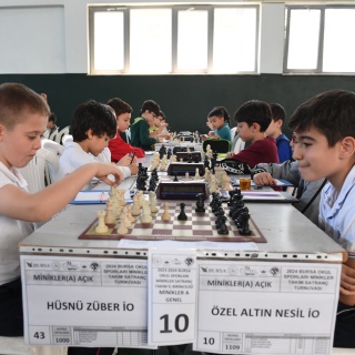 Osmangazi Belediyesi Gençlik ve Spor Hizmetleri Müdürlüğü ev sahipliğinde Ertuğrul Sağlam Spor Tesisleri’nde düzenlenen 2024 Bursa Mahalli Okul Sporları Minikler Satranç Turnuvası’nda minik öğrenciler kıyasıya mücadele etti. Osmangazi Belediye Başkanı Erkan Aydın’ın ilk hamlesiyle başlayan ve 5 gün süren satranç turnuvasında 182 takımın katılımıyla bin 92 öğrenci derece elde edebilmek için ter döktü.