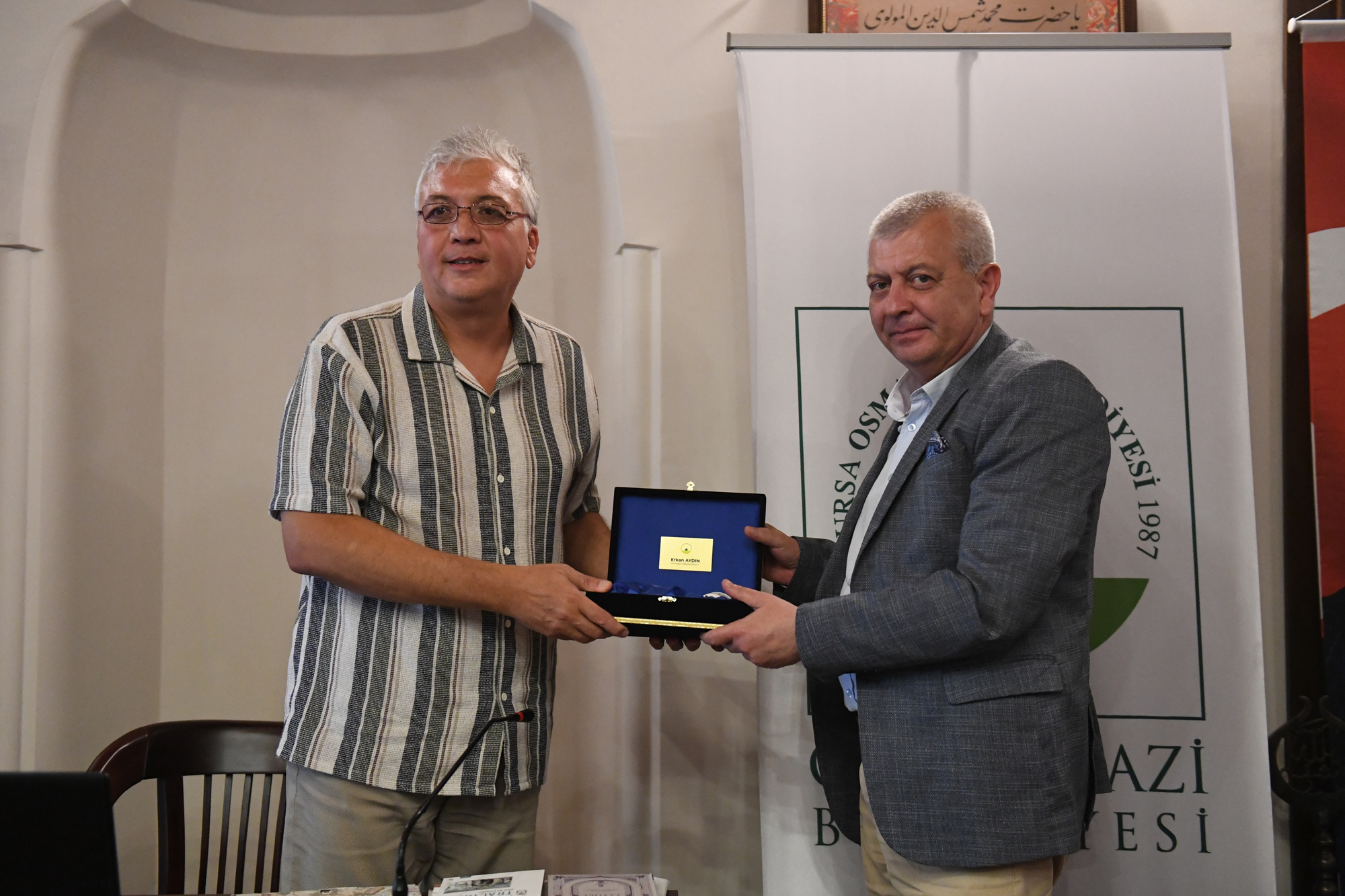 Osmangazi Belediye Başkan Yardımcısı Mutlu Esendemir, program sonunda şair, yazar ve çevirmen Cem Yavuz’a teşekkür plaketi hediye etti.
