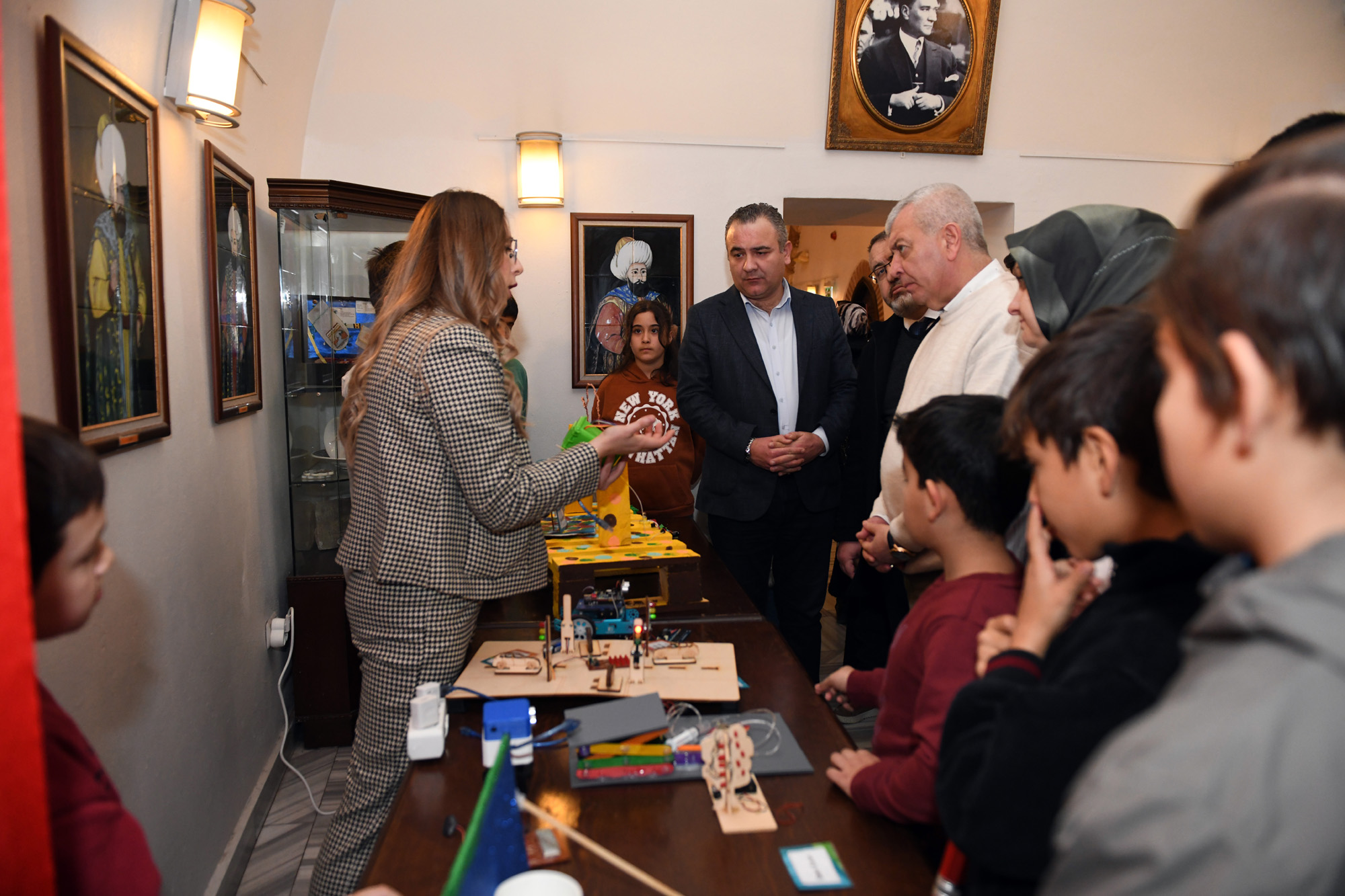 Hüdavendigar Yetenek Evi’nde açılan Robotik Kodlama ve STEM Atölyesi’nde eğitim gören öğrenciler, hayal gücü ve becerileri ile ortaya çıkardıkları ürünleri, Ördekli Kültür Merkezi’nde açtıkları ‘Mucit Çocuklar Sergisi’ ile tanıttı. Açılan sergide öğrenciler, günümüzde en ilgi çekici konuların başında gelen kodlama alanında hazırlamış oldukları projeleri katılımcılarla paylaştı. Elektronik devreler ile farklı modellerde robotlar, ileri dönüşüm ile atık malzemelerden oluşan oyuncaklar, yenilenebilir enerji gibi projelerin yer aldığı sergi, büyük beğeni topladı.
